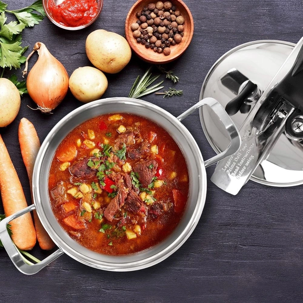 - STALOWY - Szybkowar wykonany z wysokiej jakości stali nierdzewnej. Posiada 3-warstwowe dno akutermiczne.