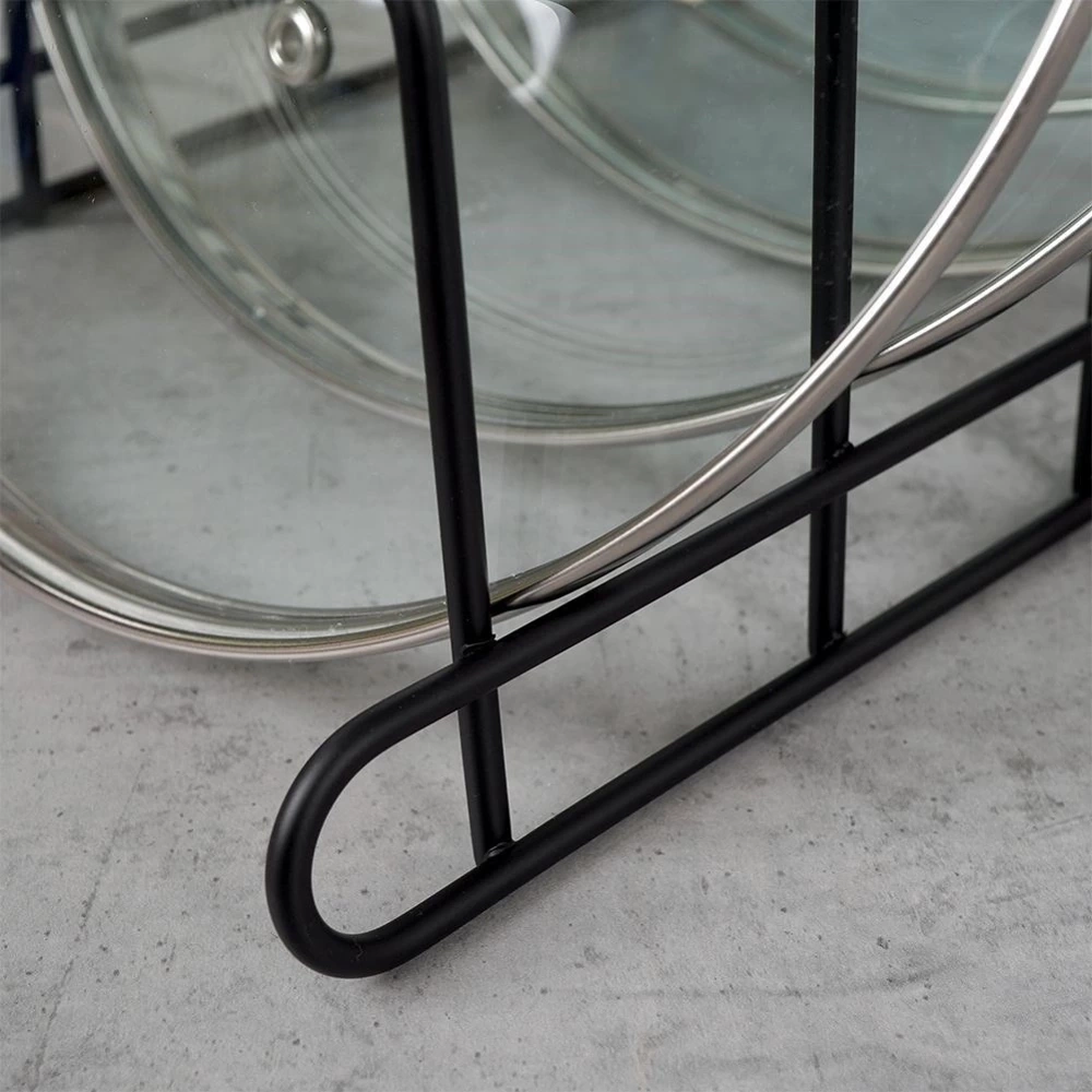 - Zestaw 2 metalowych organizerów na pokrywki, talerze i deski – każdy stojak mieści 6 sztuk, chroni przed obiciami i pomaga utrzymać porządek w szafce, szufladzie lub na blacie.