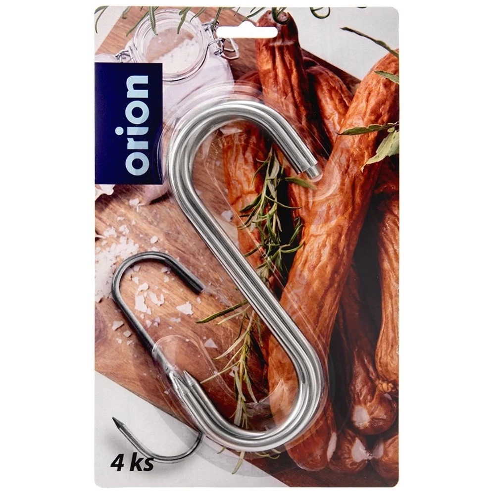 Zestaw 4 sztuk haków wędzarniczych. Haki z jednej strony są zaostrzone, co pozwoli na wygodne wbicie mięsa. Haki wykonane są z solidnych materiałów, dzięki czemu odpowiednio umocujemy wędzone mięsa na nich. Korzystanie z haków podczas wędzenia umożliwia swobodne przemieszczanie i obracanie mięsa. Oryginalny produkt czeskiej marki Orion. Wyprodukowano zgodnie z europejskimi standardami.