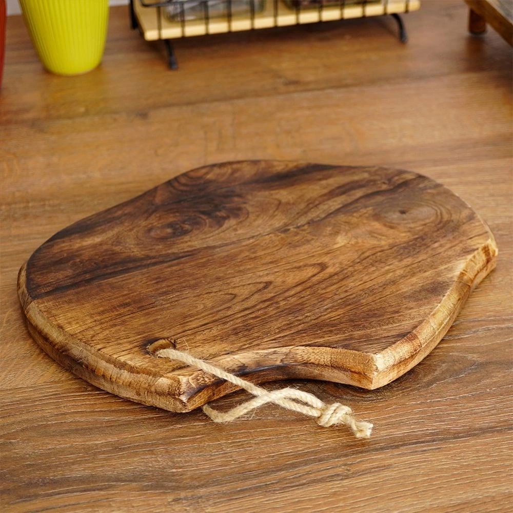 - Kuchenna deska wykonana z egzotycznego drewna mango. Posiada wyjątkowy, postarzany wygląd i nieregularny kształt. Sprawdzi się do krojenia oraz serwowania.