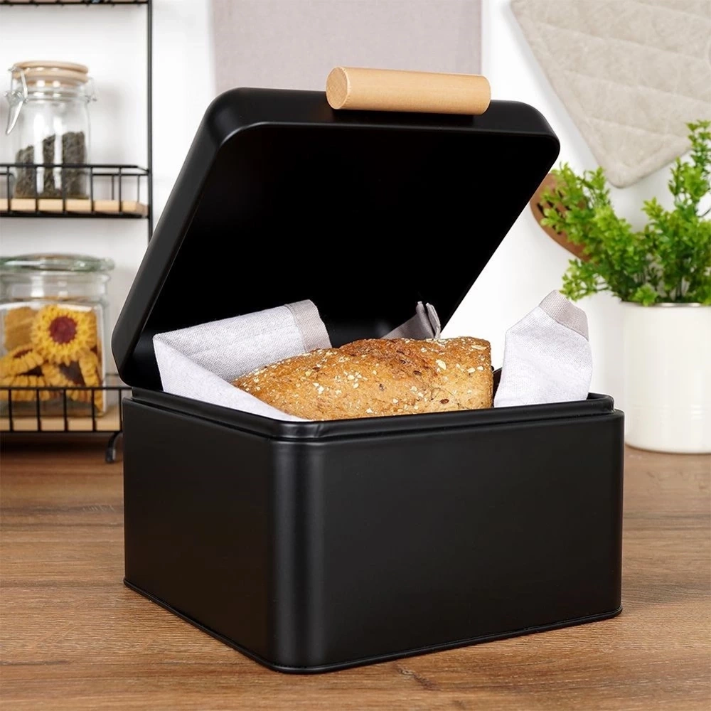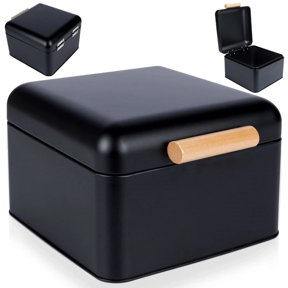 - Kompaktowy chlebak wykonany z wysokiej jakości metalu w czarnym kolorze. Posiada wygodną pokrywkę na zawiasach otwieraną za pomocą uchwytu.