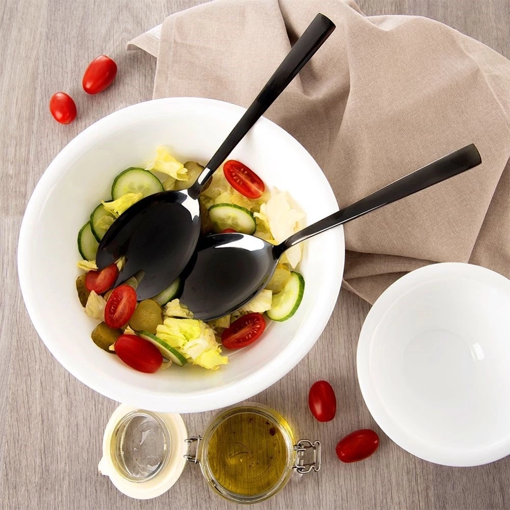 - Łyżka do sałatki wykonana ze stali nierdzewnej w pięknym czarnym kolorze. Idealna do mieszania i nakładania sałatki. Nadaje się do mycia w zmywarce.