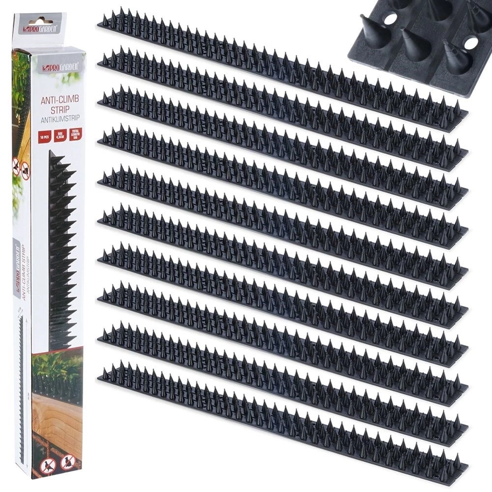 Zestaw dziesięciu sztuk listew z kolcami na ptaki. Kolce na ptaki uniemożliwią lądowanie oraz przesiadywanie zarówno małych jak i dużych ptaków. Został zaprojektowane tak, aby skutecznie walczyć z niechcianymi ptakami. Posiadają modułową budowę, więc możemy je odpowiednio łączyć. Zapewnią czystość na parapecie lub w innych miejscach, w których ptaki są niepożądane. Zestaw nie zawiera elementów montażowych. Oryginalny produkt holenderskiej marki ProGarden. Wyprodukowano zgodnie z europejskimi standardami.