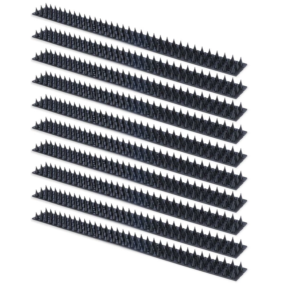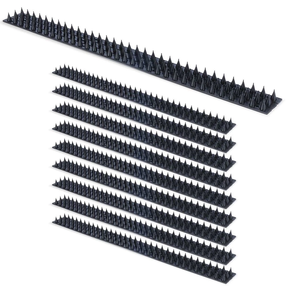 - PRZYDATNE - Zestaw dziesięciu sztuk kolców na ptaki. Kolce umieszczone są na listwie, każda listwa z kolcami o wymiarach 50 x 4,5 x 2 cm, łączna długość listew wynosi 5 metrów.