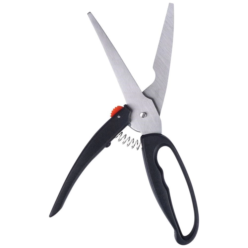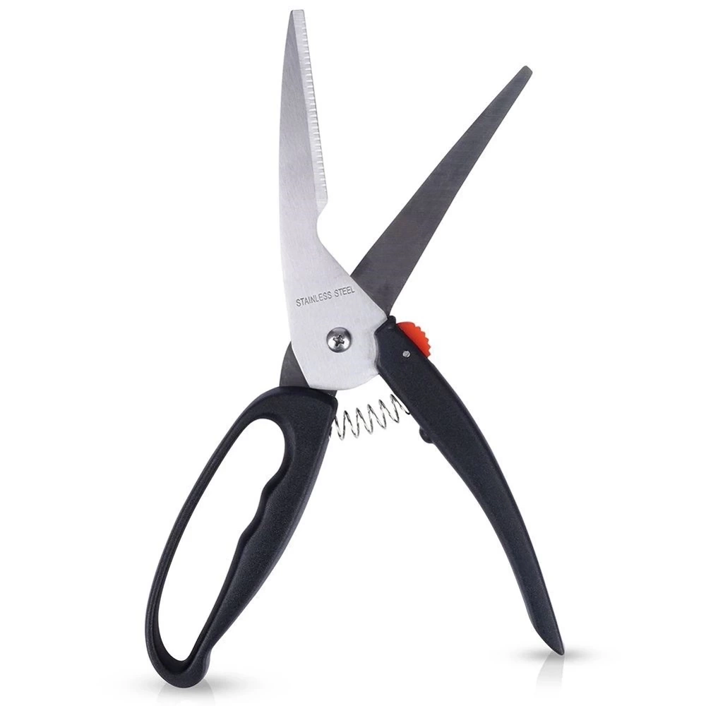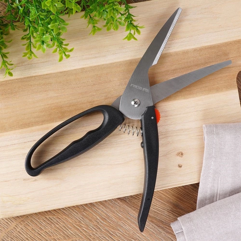 - Ostre nożyce do cięcia surowego, pieczonego, grillowanego drobiu. Praktyczny system blokowania - wystarczy nacisnąć przycisk. Wykonane z wysokiej jakości stali nierdzewnej oraz tworzywa.