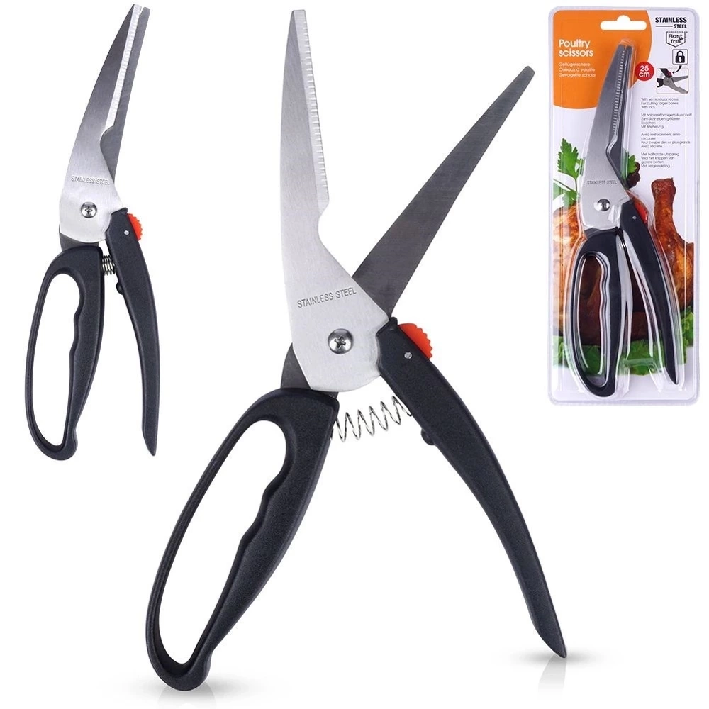 - PRZYDATNE - Nożyce do cięcia surowego, pieczonego, grillowanego drobiu. Niezwykle przydatne w każdym domu. Całkowita długość nożyczek wynosi 25 cm a długość ostrza 10 cm.