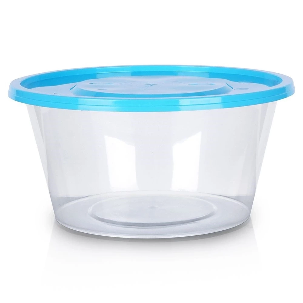 - Zestaw 10 sztuk okrągłych pojemników do przechowywania oraz przenoszenia żywności. Każdy pojemnik ma pojemność 650 ml. Nadają się do lodówki i mikrofalówki.