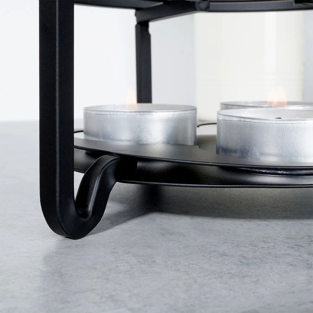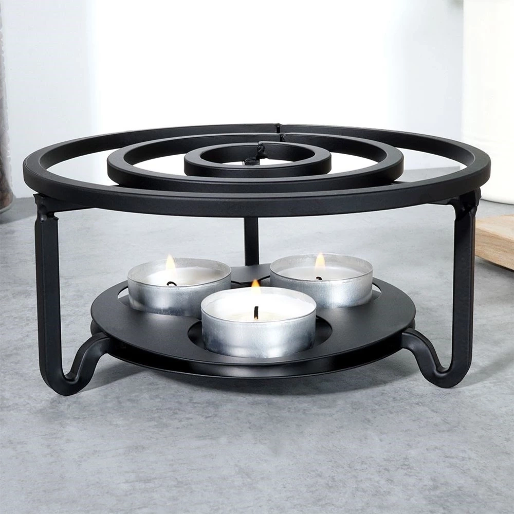 - Podgrzewacz wykonany z metalu na świeczki typu tealight. Sprawdzi się pod czajniczki, dzbanki, garnki i inne naczynia. Odpowiedni do przygotowania fondue.