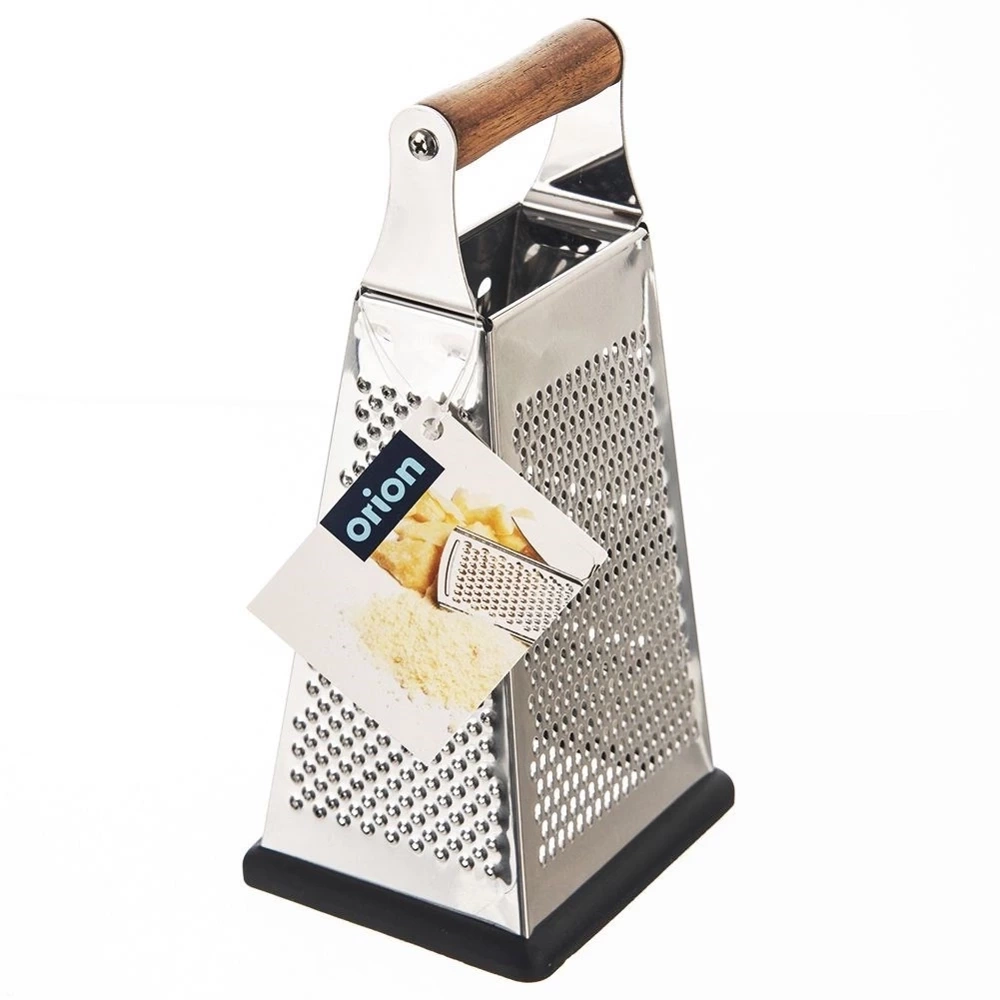 Uniwersalna tarka kuchenna z czterema różnymi ostrzami, każde z nich przeznaczone do innej czynności. Posiada wygodny uchwyt i antypoślizgową podstawę, co ułatwia użytkowanie. Łatwa w czyszczeniu i poręczna. Niezbędna w każdej kuchni. W celu odpowiedniej konserwacji nie zaleca się mycia w zmywarce do naczyń. Całkowicie bezpieczna dla zdrowia i neutralna dla żywności. Oryginalny produkt czeskiej marki Orion. Wyprodukowano zgodnie z europejskimi standardami.