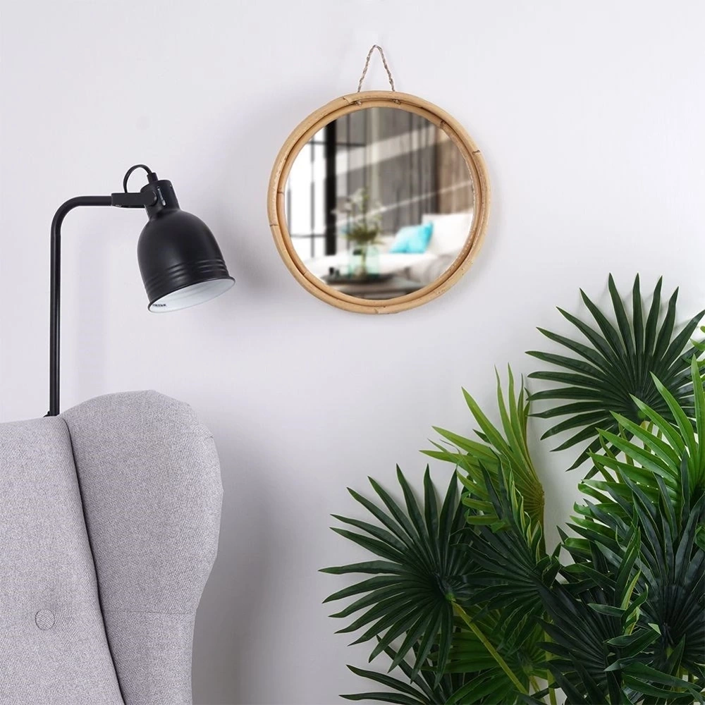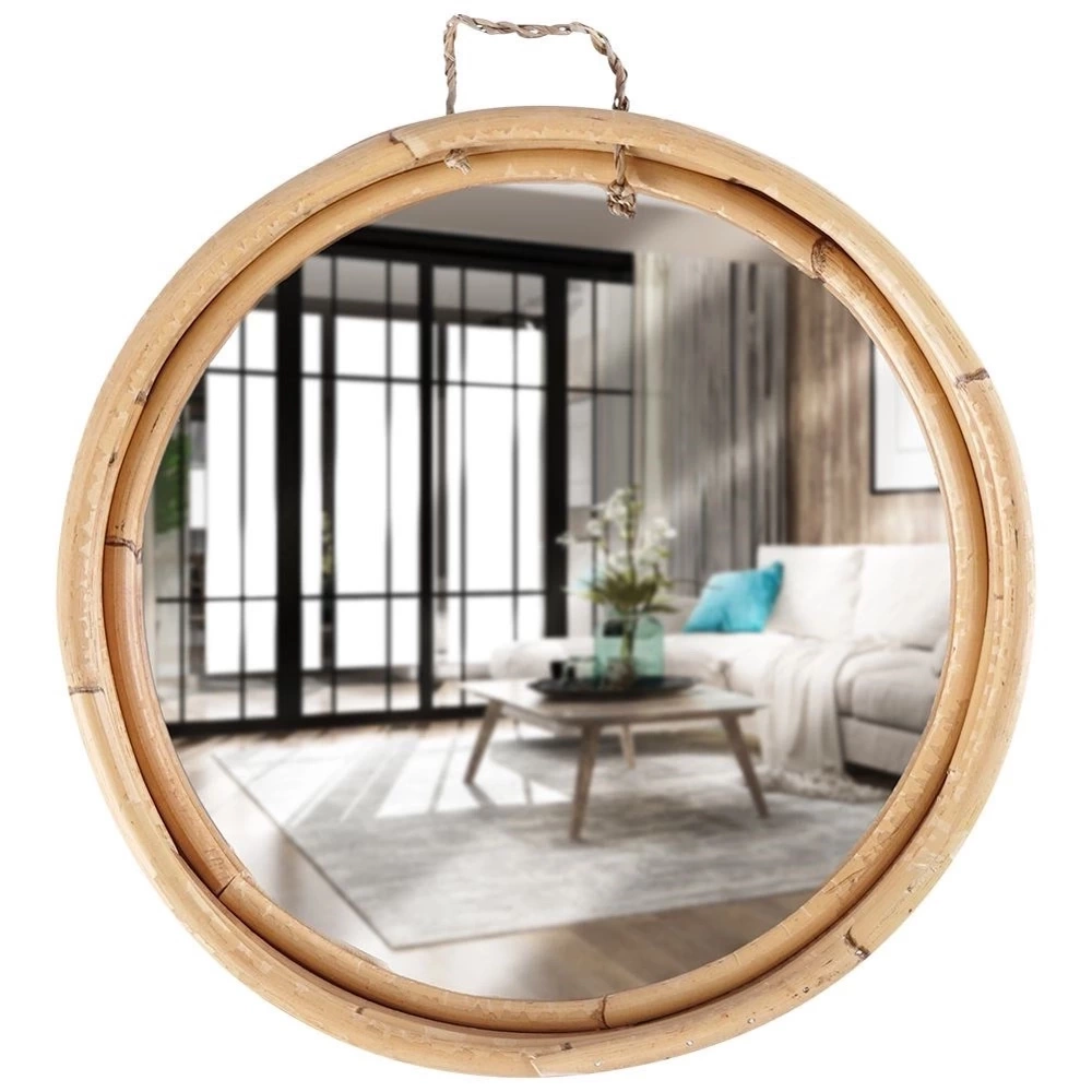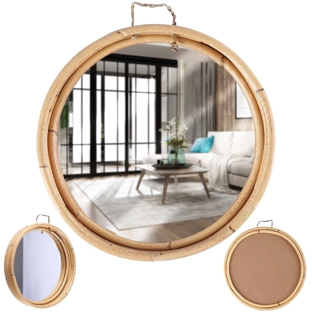 - Dekoracyjne lustro ścienne o średnicy 30 cm, umieszczone w rattanowej ramie. Można je powiesić w przedpokoju, łazience, kuchni, pokoju i sypialni. Niezwykle efektowne.