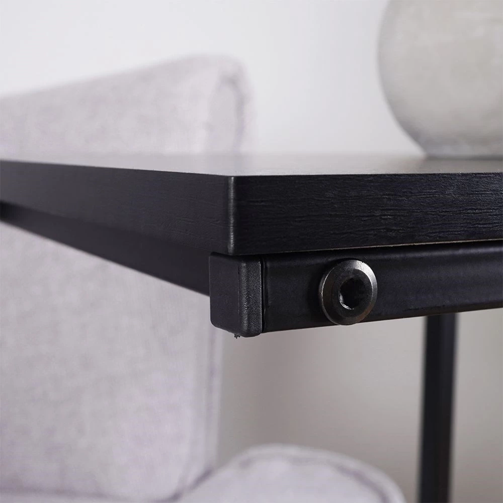 - Boczny stolik kawowy w industrialnym stylu loft. Dolna część wykonana z metalu w kolorze czarnym. Sprawdzi się jako stolik kawowy, szafka nocna, stolik śniadaniowy lub stolik pod laptopa.