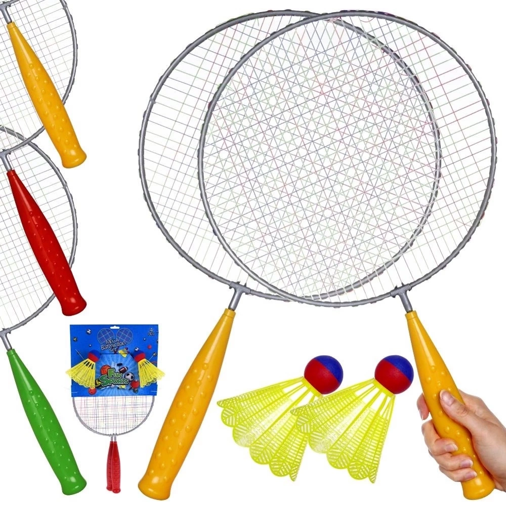 - KOMPLETNY ZESTAW - Zestaw do badmintona składający się z dwóch rakietek oraz dwóch lotek. Rakiety mają wymiar 51,5 x 30,5 cm. Lotki mają średnicę 9 cm.