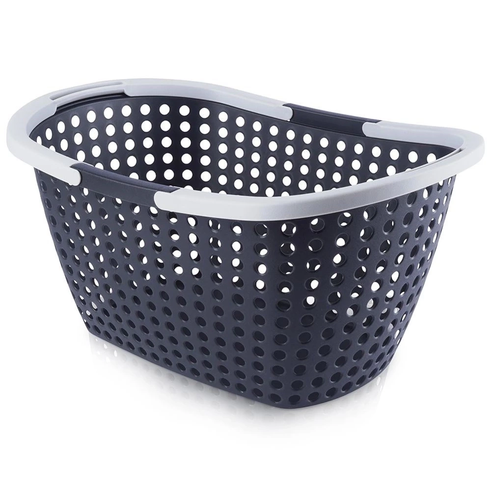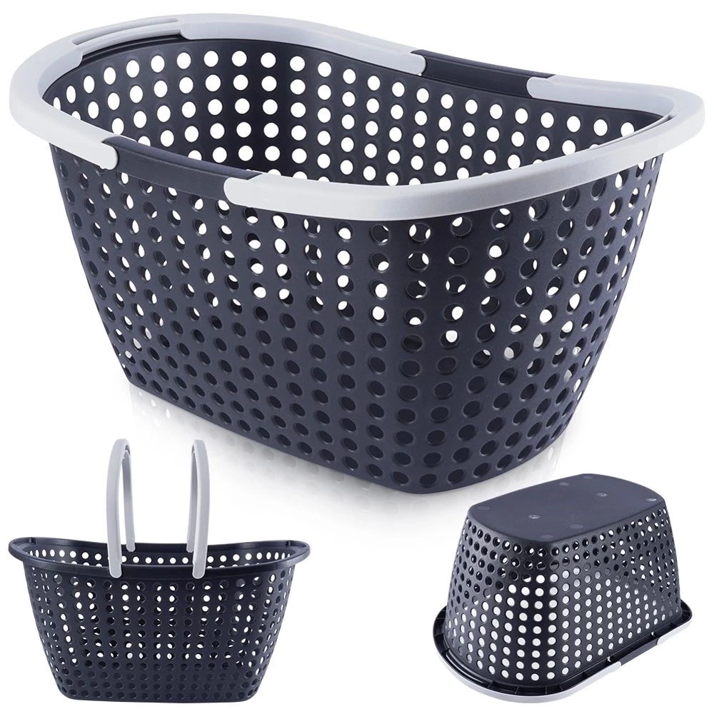 - WYTRZYMAŁY - Wykonany z najwyższej jakości tworzywa w kolorze antracytowym, a jego uchwyty są w kolorze jasnoszarym. Koszyk jest wytrzymały i lekki.