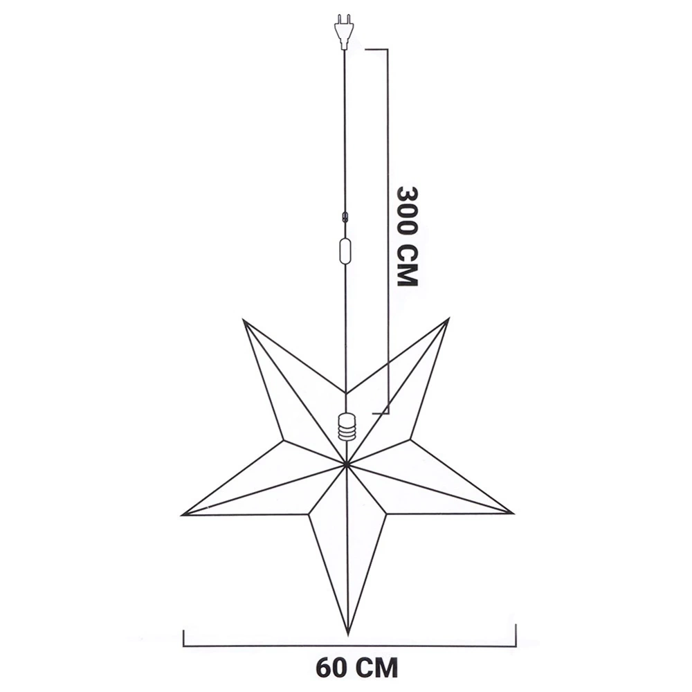 - ŚWIECĄCA - Gwiazda zasilana jest sieciowo, posiada włącznik oraz wtyczkę do prądu. Pasuje do niej żarówka E14 o maksymalnej mocy 25W (brak żarówki w zestawie). Posiada kabel o długości 3 metrów.