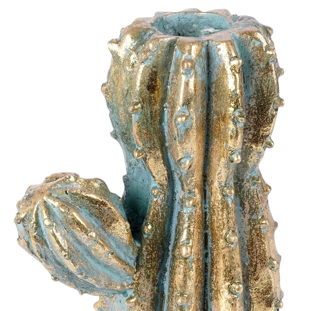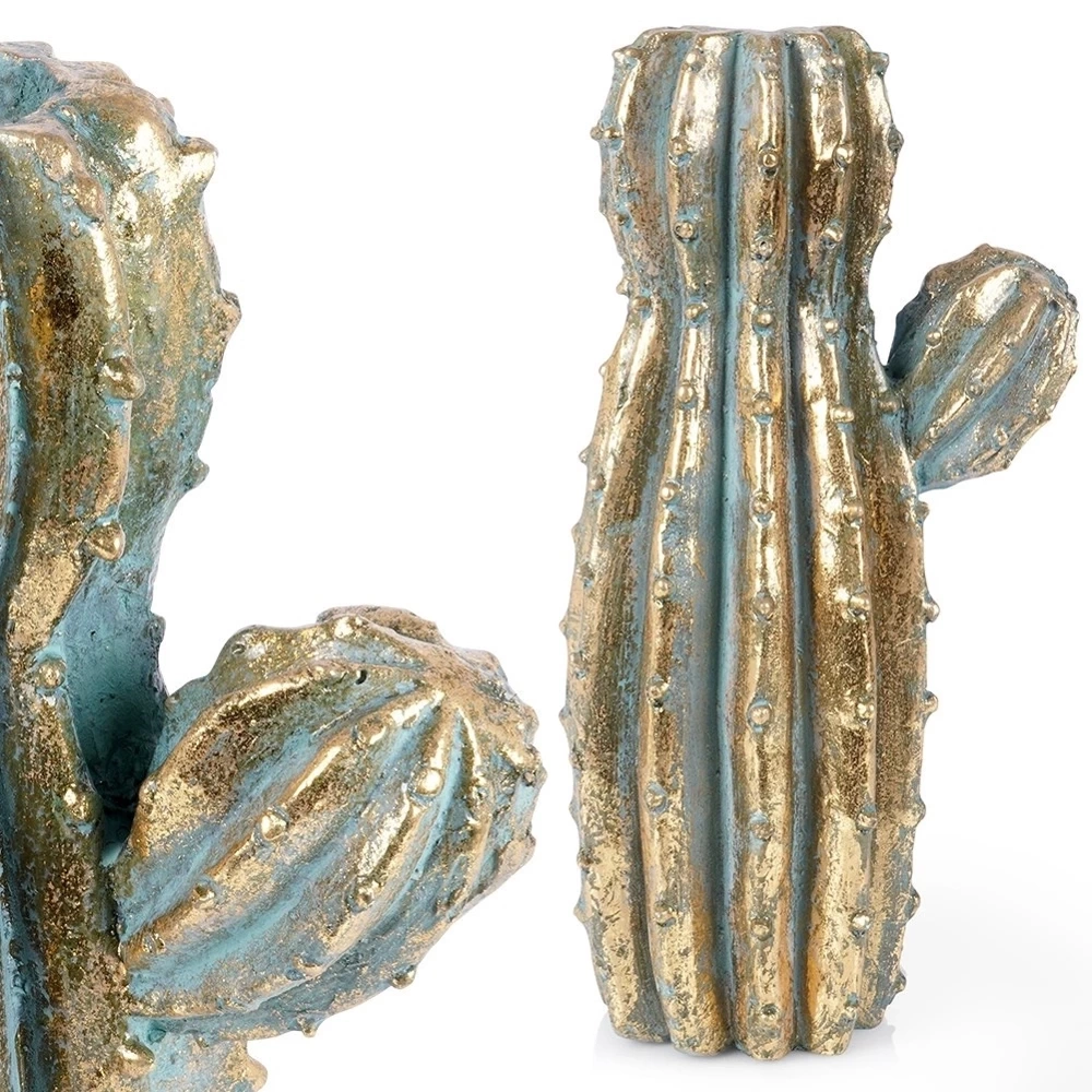 - Wazon na kwiaty w kształcie kaktusa. Wykonany z cementu malowanego na złoty kolor. Nada wyjątkowego charakteru każdemu wnętrzu.