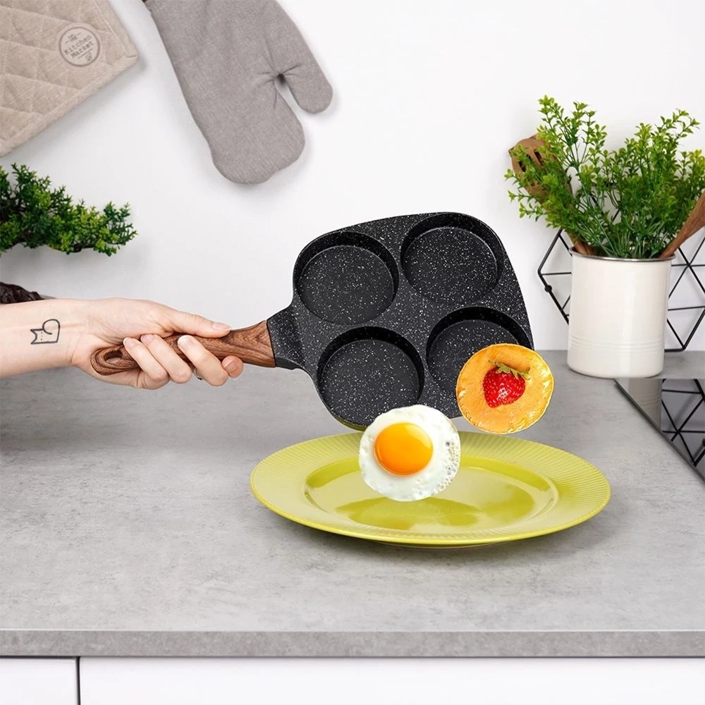 - Nieprzywierająca patelnia granitowa z 4 otworami. Idealna do przygotowania naleśników, placuszków oraz jajek. Nadaje się do wszystkich rodzajów kuchenek oraz do mycia w zmywarce.