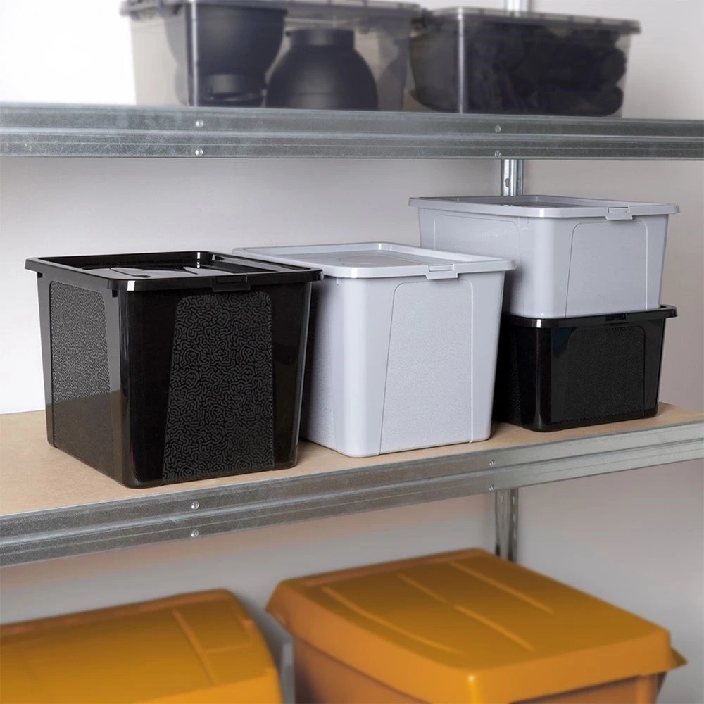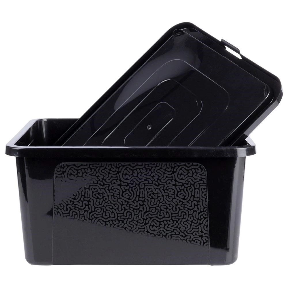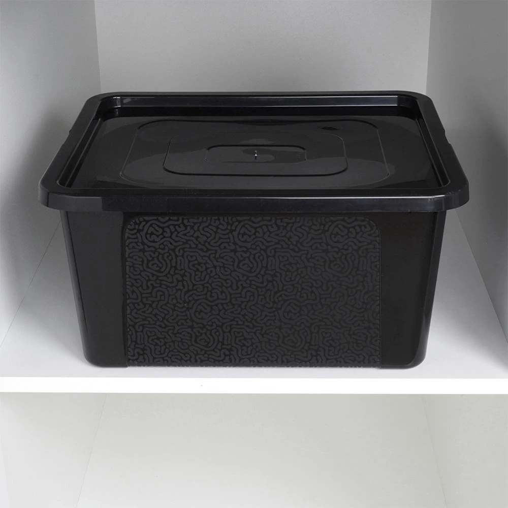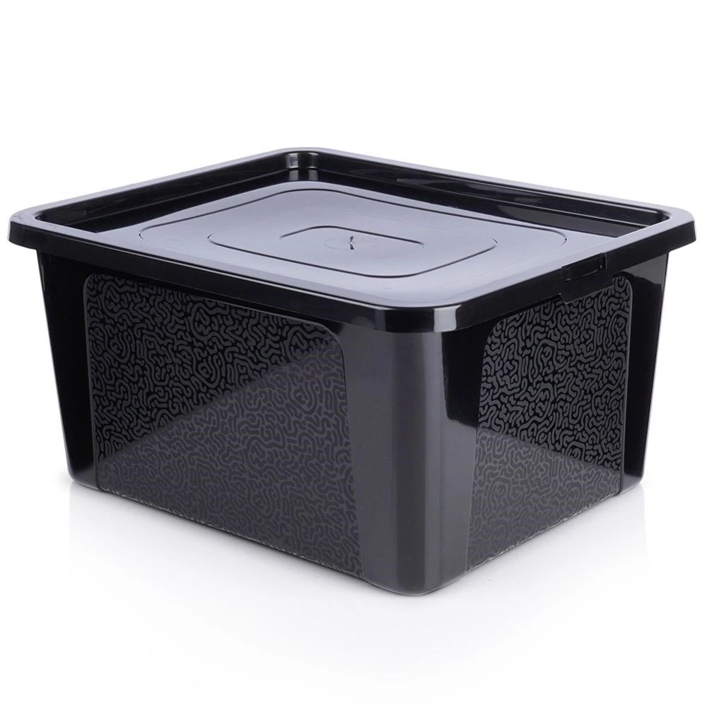 - Pojemnik z pokrywą, przeznaczony do przechowywania różnych przedmiotów. Pomoże w utrzymaniu porządku. Wykonany z wytrzymałego tworzywa w czarnym kolorze.