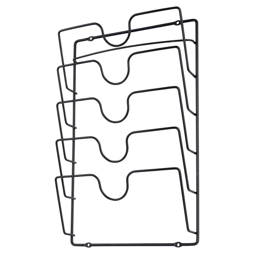 - PRAKTYCZNY - Wieszak na 5 pokrywek do garnków to idealne rozwiązanie dla każdej kuchni. Przeznaczony do powieszenia wewnątrz szafki lub na kuchennej ścianie, co zapewnia wygodny dostęp do pokrywek. Organizer ma wymiary: 27,5 x 43,5 cm.