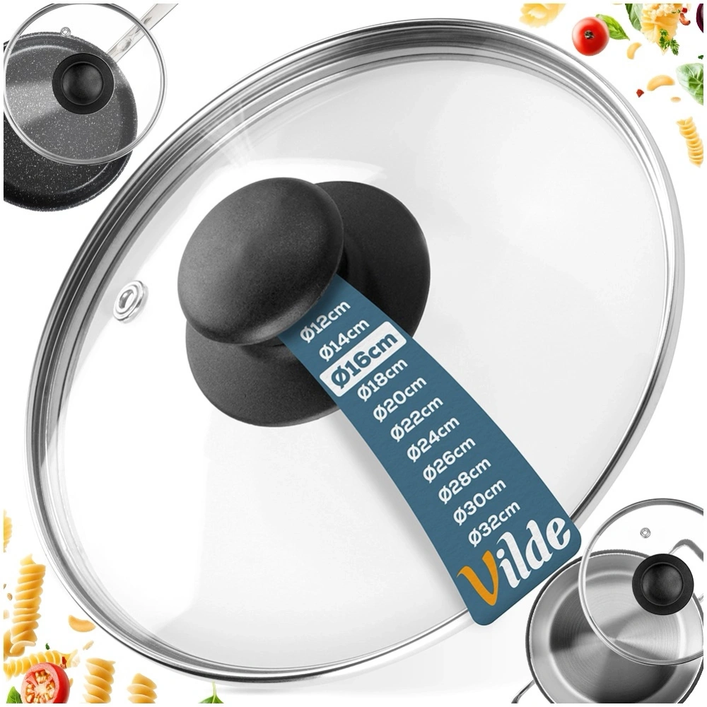 Uniwersalna pokrywka szklana, idealne pasująca do naczyń, patelni i garnków o średnicy 16 cm. Wykonana z wytrzymałych i solidnych materiałów. Będzie świetnym uzupełnieniem garnka lub patelni, które pokrywki w zestawie nie posiadały. Klasyczny kształt zapewni wygodne użytkowanie. Pokrywka jest niezbędna w każdej kuchni. Dzięki niej potrawy szybciej się gotują, a także zabezpiecza przed pryskaniem wody i tłuszczu. Dodatkowo, pokrywka sprawia, że przygotowane potrawy dłużej utrzymują temperaturę. Oryginalny produkt marki Vilde. Wyprodukowano zgodnie z europejskimi standardami.