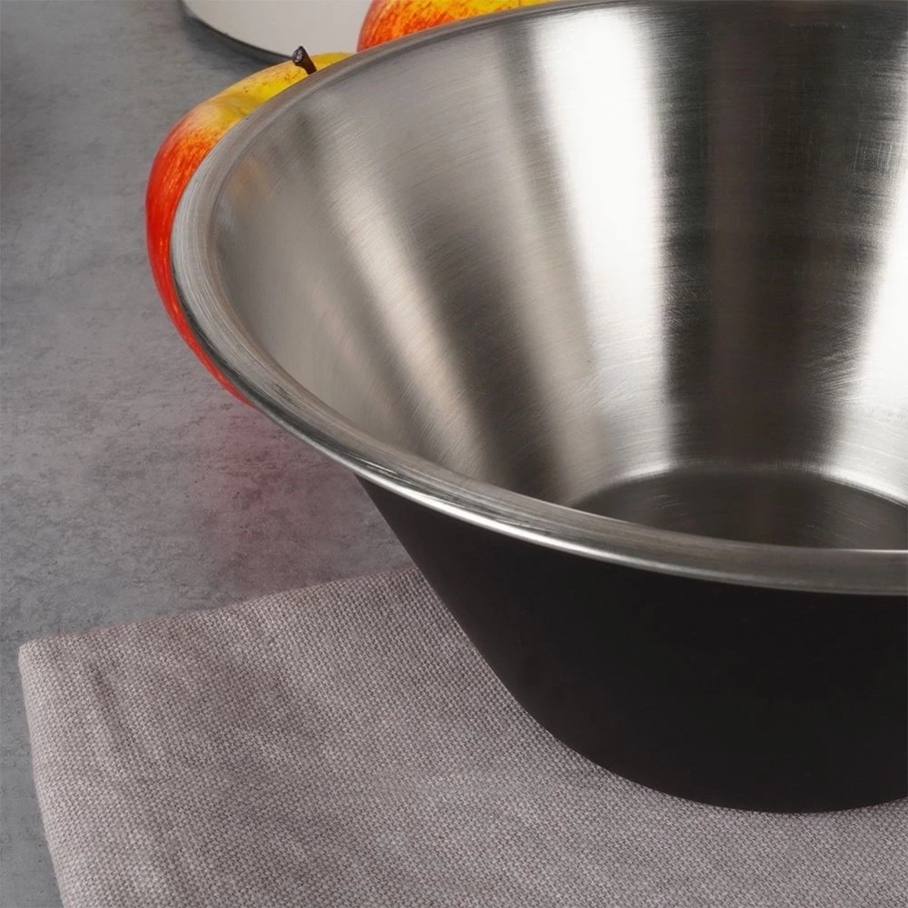 - Miska ze stali nierdzewnej o wszechstronnym zastosowaniu w kuchni. Miska z zewnątrz pomalowana jest na czarny, matowy kolor więc prezentuje się bardzo efektownie.