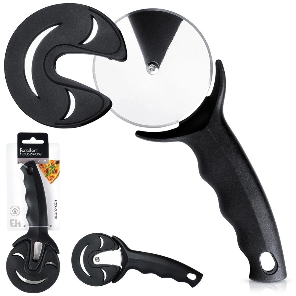 - Okrągły nóż do krojenia pizzy wraz z osłoną noża. Ostrze wykonany ze stali nierdzewnej. Dzięki niemu z łatwością pokroisz pizzę na kawałki.