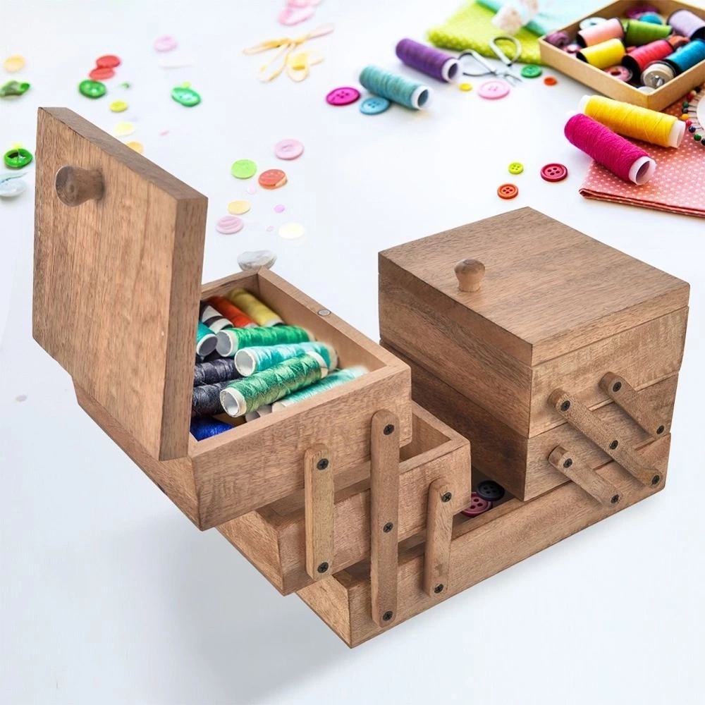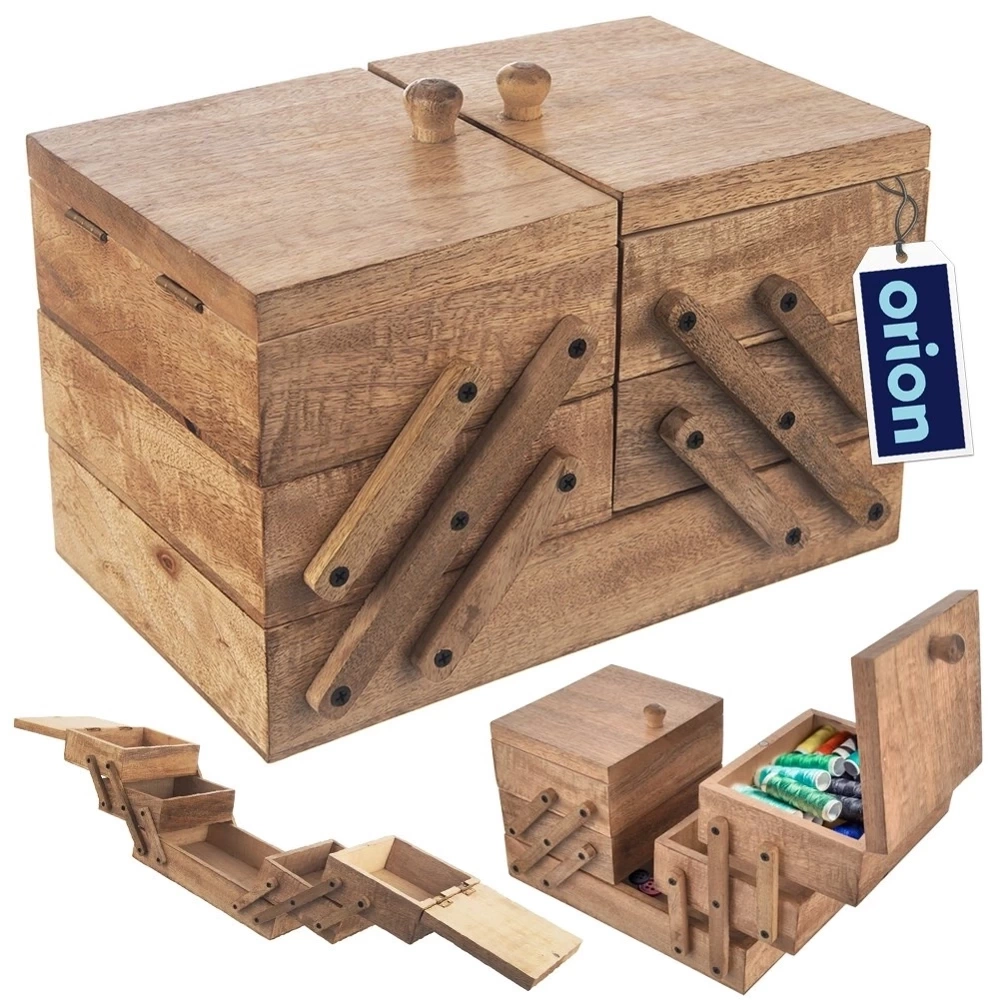 - Niciarka wykonana z drewna do przechowywania przyborów do szycia oraz różnych drobiazgów. Posiada 5 przegródek, otwierana w wygodny sposób.