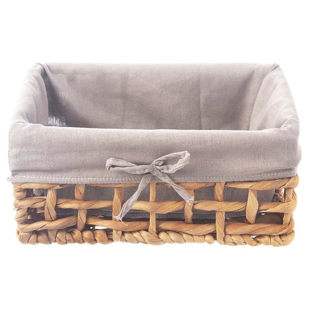 - RĘCZNIE ROBIONY - Koszyk do przechowywania o wymiarach 26,5 x 17 x 12,5 cm. Wykonany ręcznie z zaplecionego hiacyntu wodnego na metalowej konstrukcji. Kosz posiada materiałową wyściółkę w modnym, szarym kolorze.
