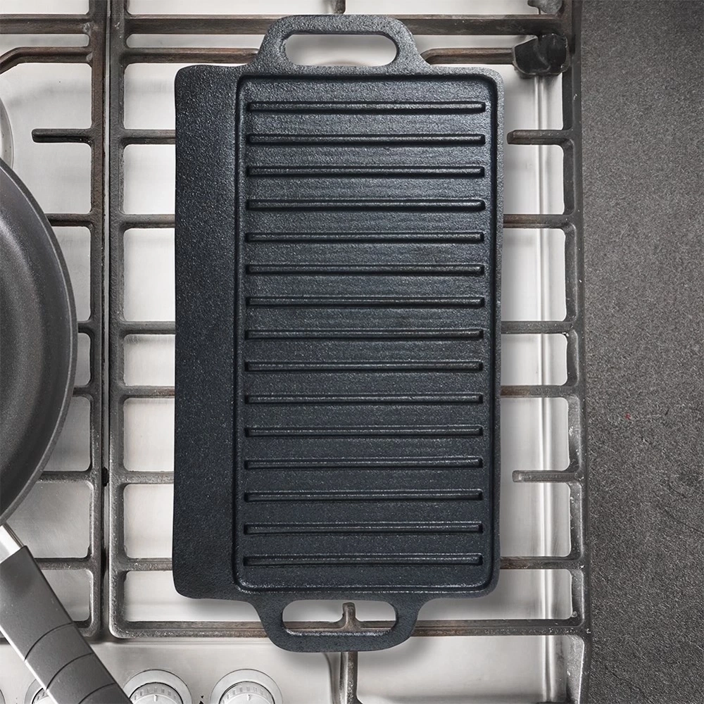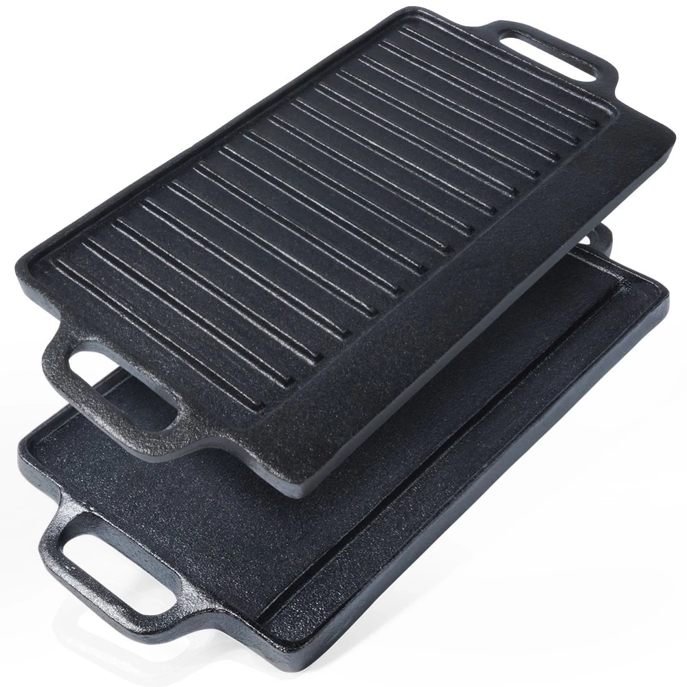 - Dwustronna płyta grillowa wykonana z żeliwa. Karbowana do grillowania mięs, ryb i warzyw. Do zastosowania w piekarniku, na grillu lub kuchence. Odporna na wysokie temperatury.