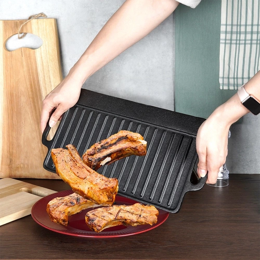 - DWUSTRONNA - Płyta posiada dwie powierzchnie użytkowe. Z jednej strony powierzchnia jest płaska, z drugiej ma powierzchnię grillową - możemy używać ich w zależności od potrzeby.