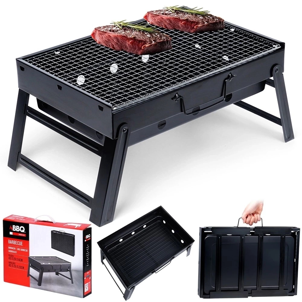 - Grill węglowy składany do kompaktowych rozmiarów, posiada uchwyt, który pozwoli na jego wygodne przeniesienie. Dodatkowo wyjmowany ruszt oraz palenisko.