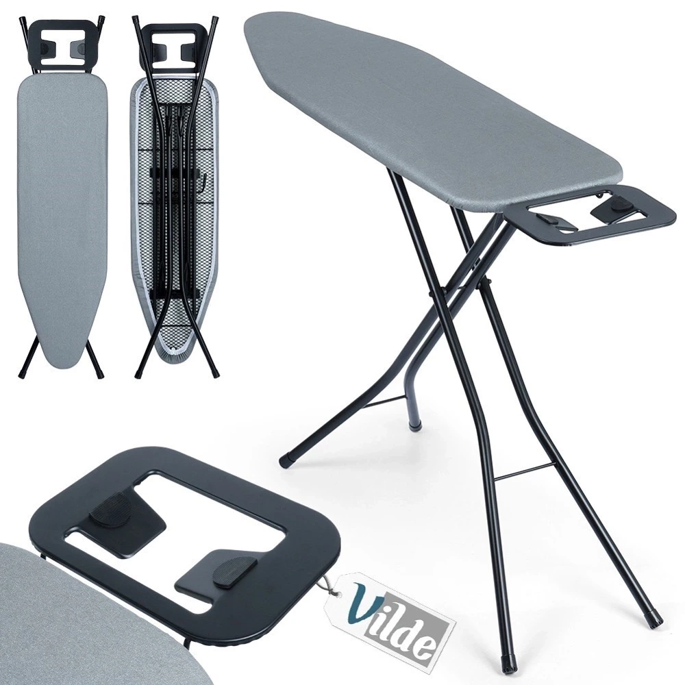 Wygodna i stabilna deska do prasowania z podstawką na żelazko. Niezastąpiona w każdym domu. Wymiary deski pozwalają na prasowanie większych ubrań i innych tekstyliów, co jest przydatne podczas prasowania np. pościeli czy zasłon. Przystosowana także do prasowania parowego. Wykonana z wytrzymałych materiałów. Odpowiednio użytkowana posłuży długie lata. Oryginalny produkt marki Vilde. Wyprodukowano zgodnie z europejskimi standardami.