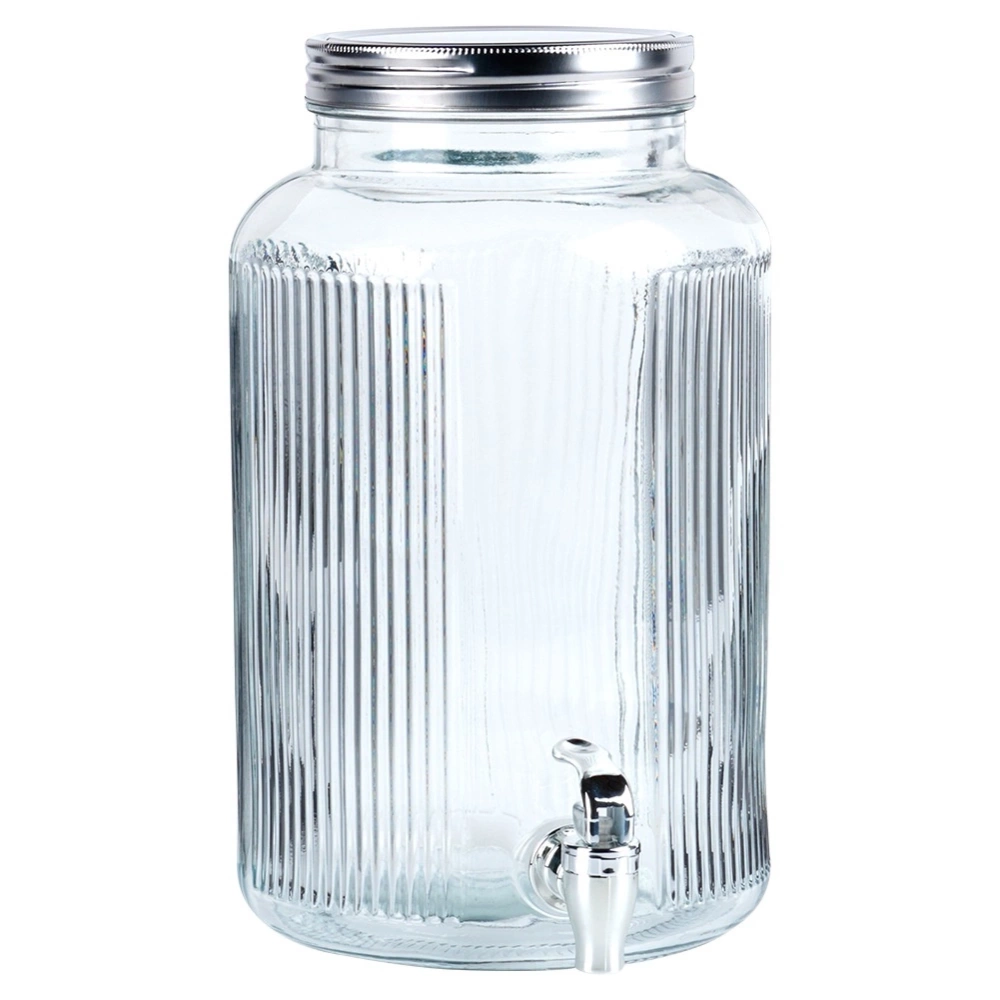 - IDEALNY DO NAPOJÓW - Dystrybutor do napojów z kranikiem o pojemności 6,2 l. Idealny do serwowania lemoniady w gorące dni, ponczu lub soku podczas imprezy. Słój ma wymiary: 24 x 18 x 30 cm.