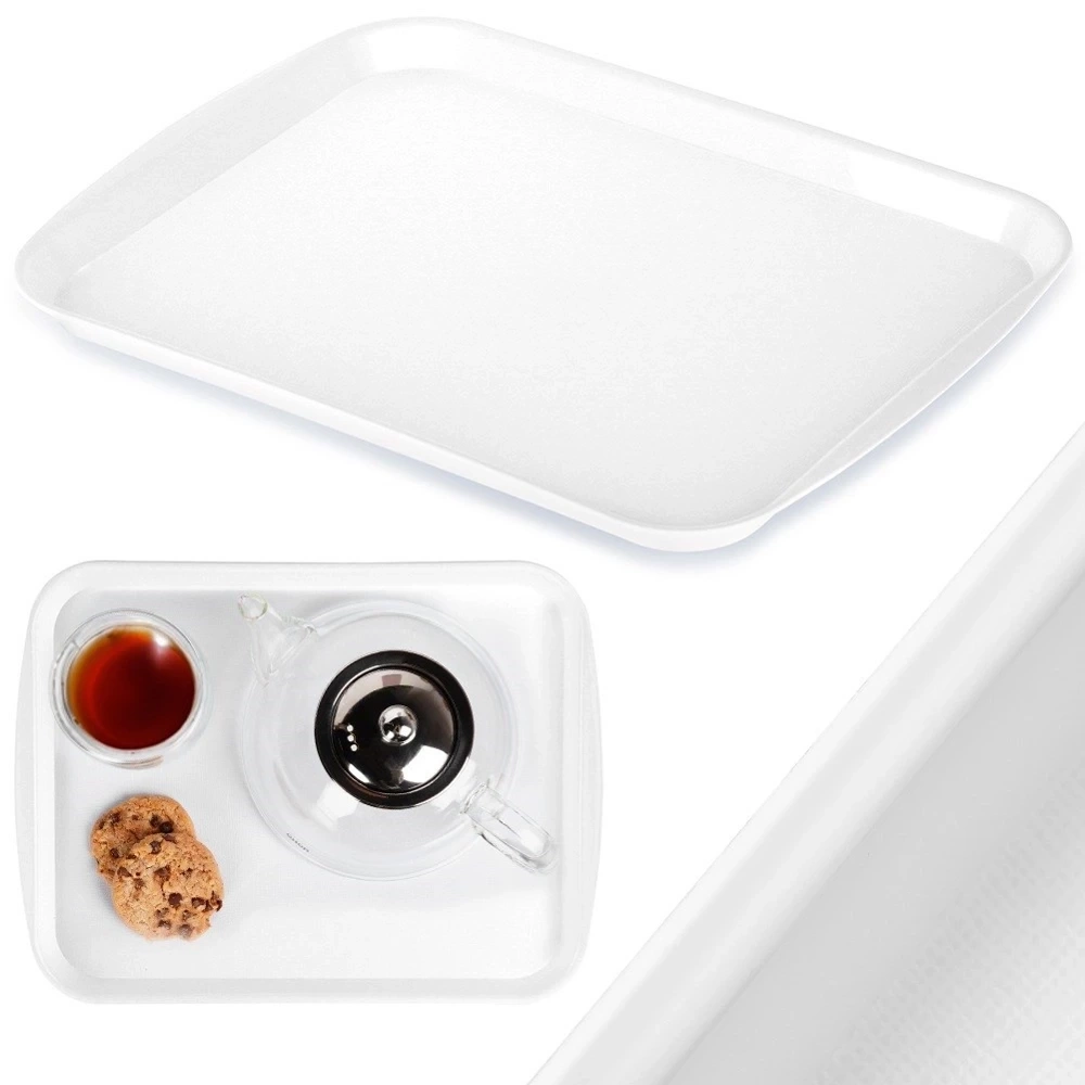 - Prostokątna taca do serwowania potraw i przekąsek. Idealna do użytku domowego i gastronomicznego, nadaje się do mycia w zmywarce, co ułatwia utrzymanie jej w czystości.