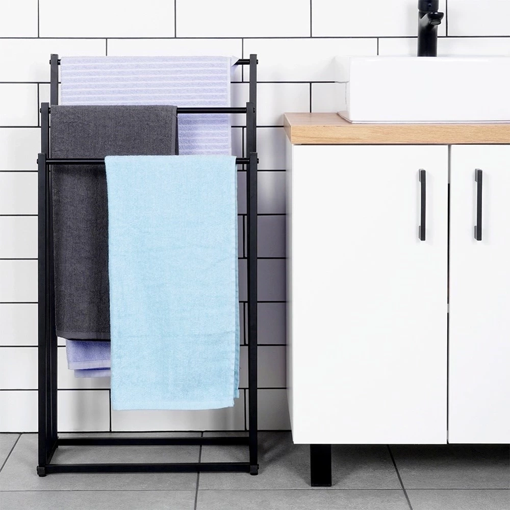 - Trzy poprzeczki do suszenia - Wieszak wyposażony jest w trzy stabilne poprzeczki, które umożliwią przechowywanie ręczników na różnych poziomach.