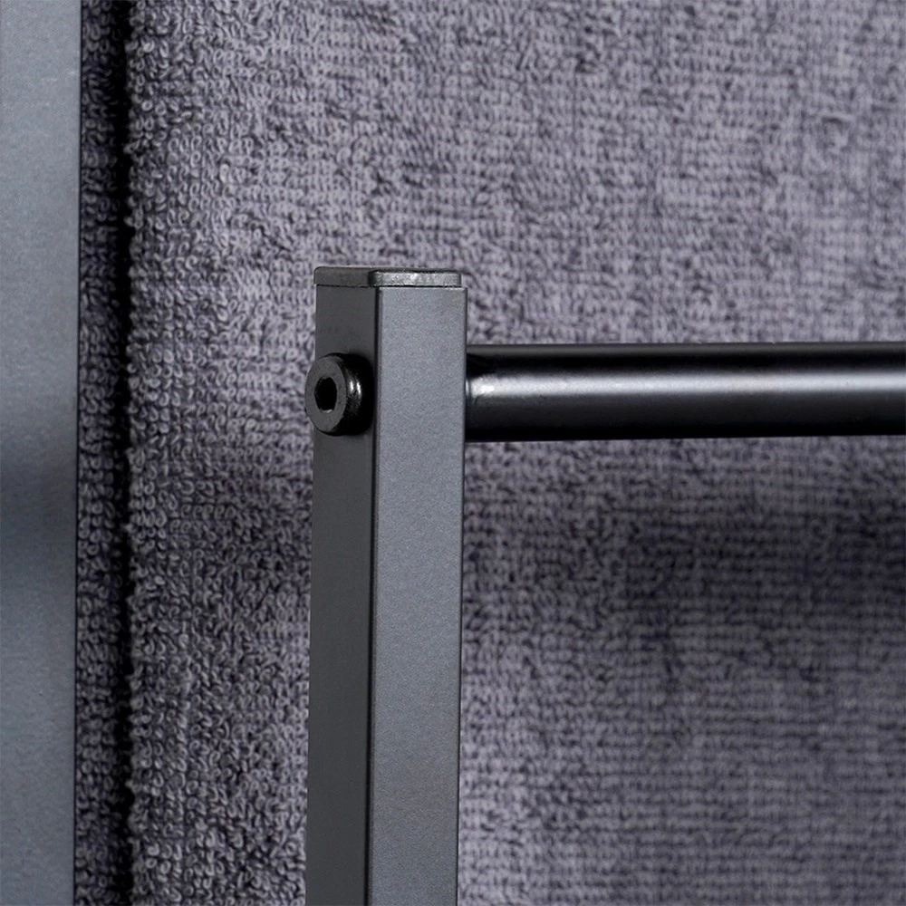 - Stabilna konstrukcja z metalu - Wykonany z najwyższej jakości metalu malowanego proszkowo na czarny kolor. Wieszak na ręczniki jest solidny i stabilny. Posiada cztery filcowe podkładki.