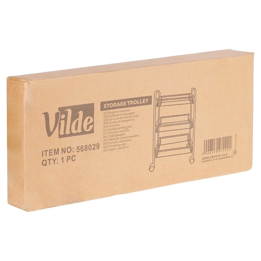 Praktyczny trzypoziomowy regał na kółkach. Regał jest solidnie wykonany a jednocześnie lekki. Jest bardzo poręczny, gdyż posiada kółka, dzięki którym możemy zmieniać jego położenie. Niezwykle przydatny w domu, ale również w warsztacie, czy biurze. Sprawdzi się do przechowywania różnych przedmiotów. Wózek pozwoli nam na uzyskanie dodatkowej przestrzeni do przechowywania akcesoriów, również na balkonie, czy tarasie - należy pamiętać o tym, by użytkować go wówczas pod zadaszeniem. Oryginalny produkt marki Vilde. Wyprodukowano zgodnie z europejskimi standardami.
