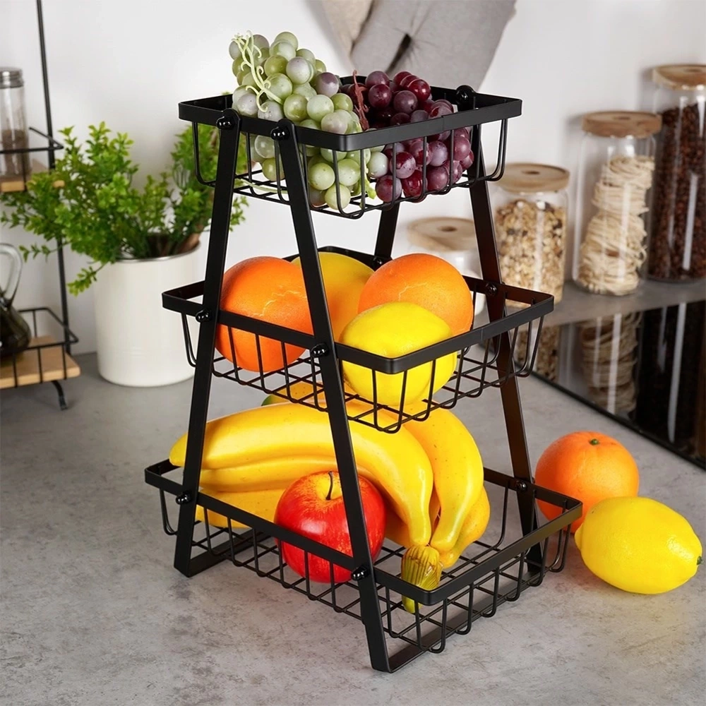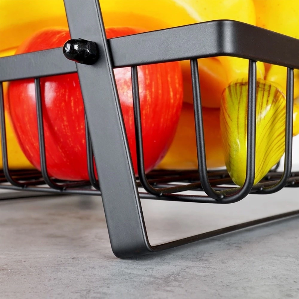 - Trzypoziomowy dla lepszej organizacji - Koszyk posiada trzy poziomy, dzięki czemu ma dużą pojemność. Dodatkowo, posiada otwarte ścianki, które zapewniają odpowiednią cyrkulację powietrza. Dzięki niemu owoce lub warzywa będą pięknie wyeksponowane, a także dłużej zachowają świeżość.