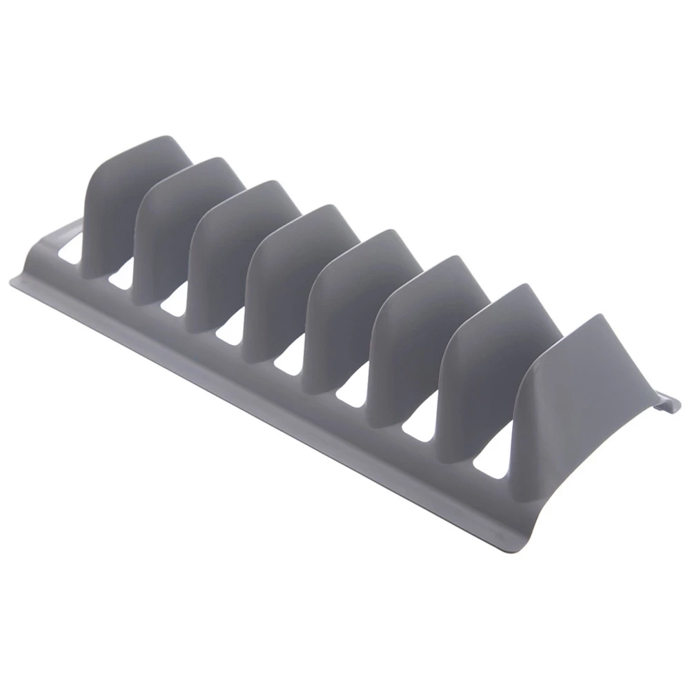 - Praktyczny organizer wykonany z tworzywa w kolorze szarym. Szybko i łatwo wyciągniemy właściwy talerz z szuflady lub szafki. Pomieści 8 talerzy, pokrywek lub desek.
