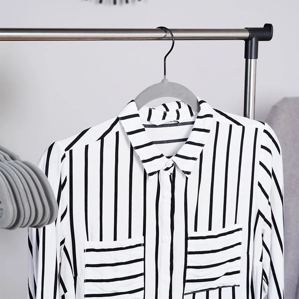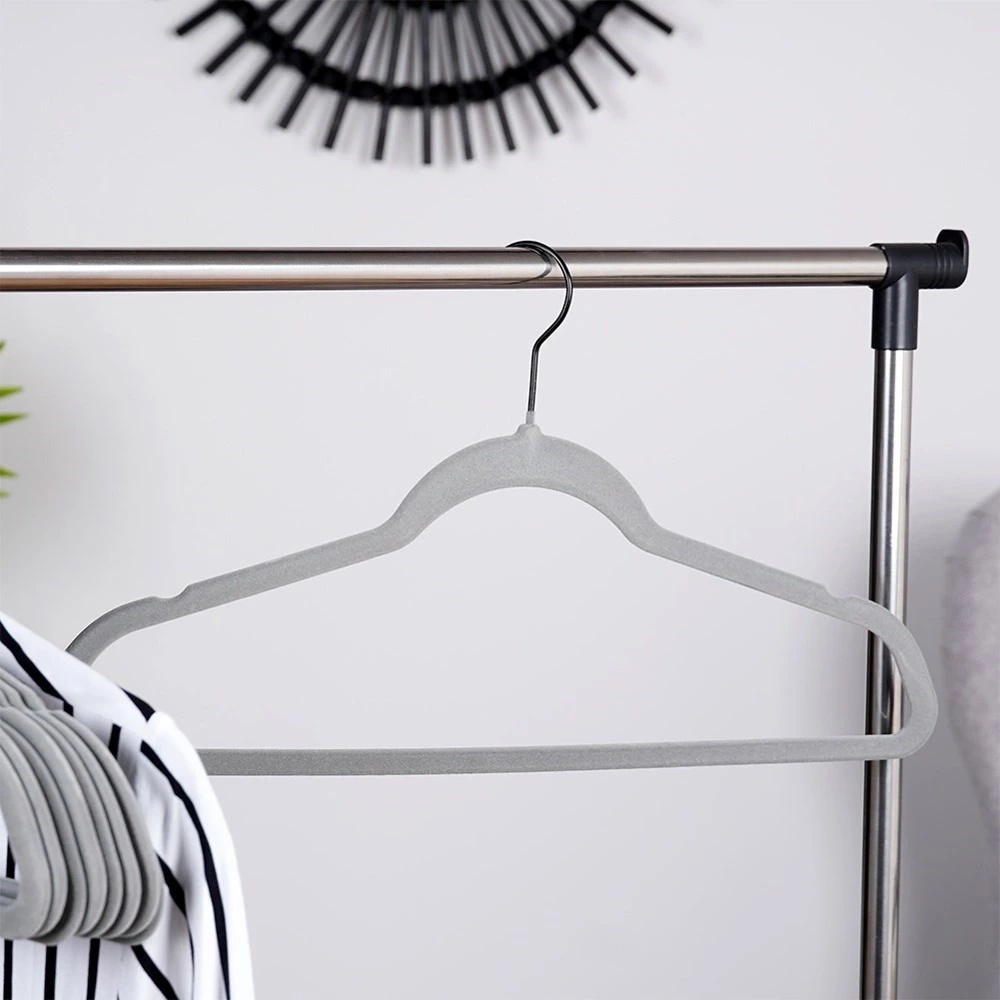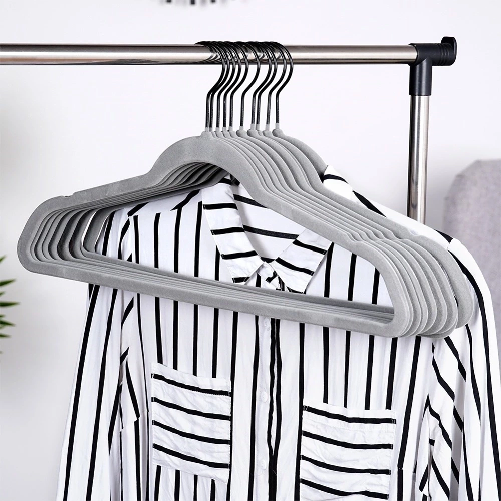 - Elegancki design - Wykończenie wieszaków z miękkiego, welurowego materiału wygląda elegancko. Estetyczny wygląd wieszaków sprawia, że są one nie tylko praktyczne, ale również stylowe.
