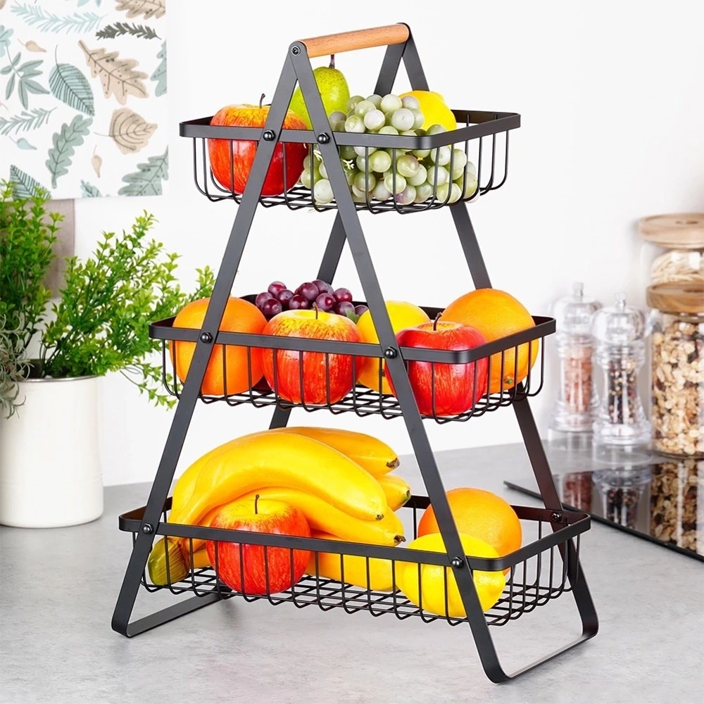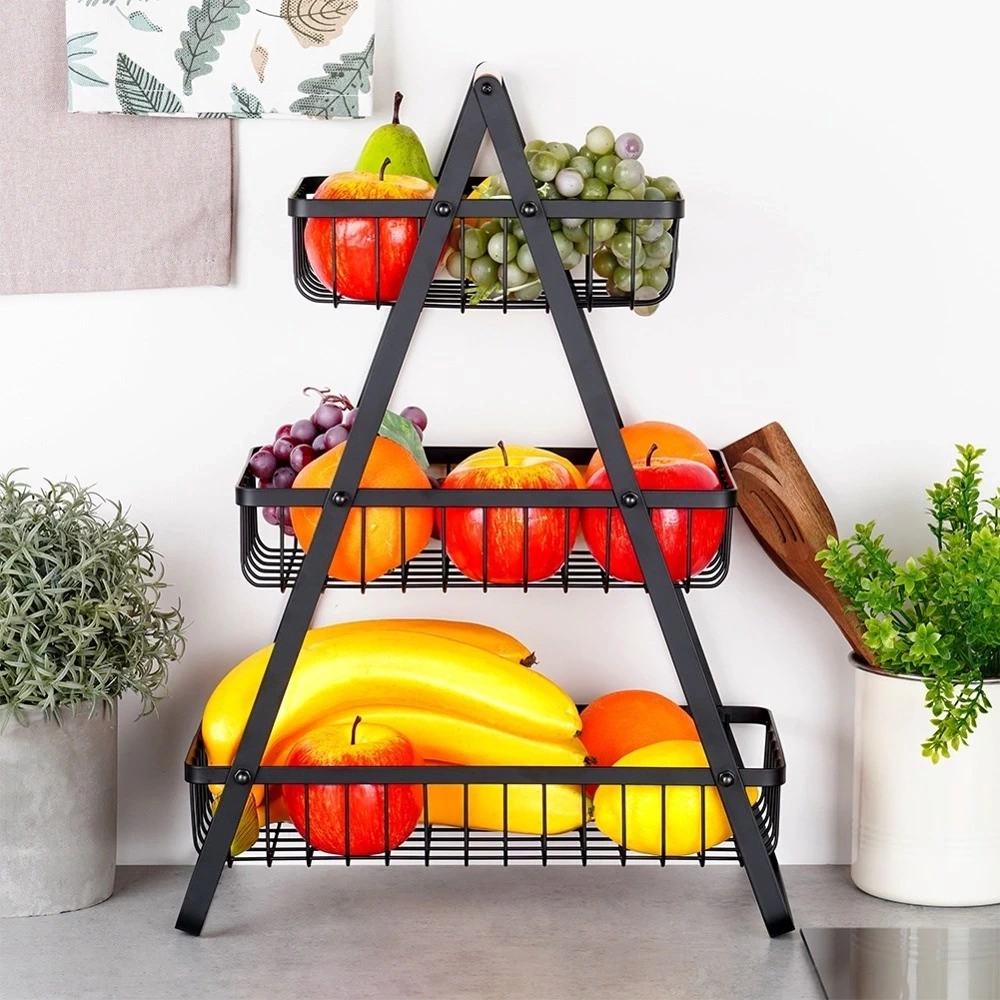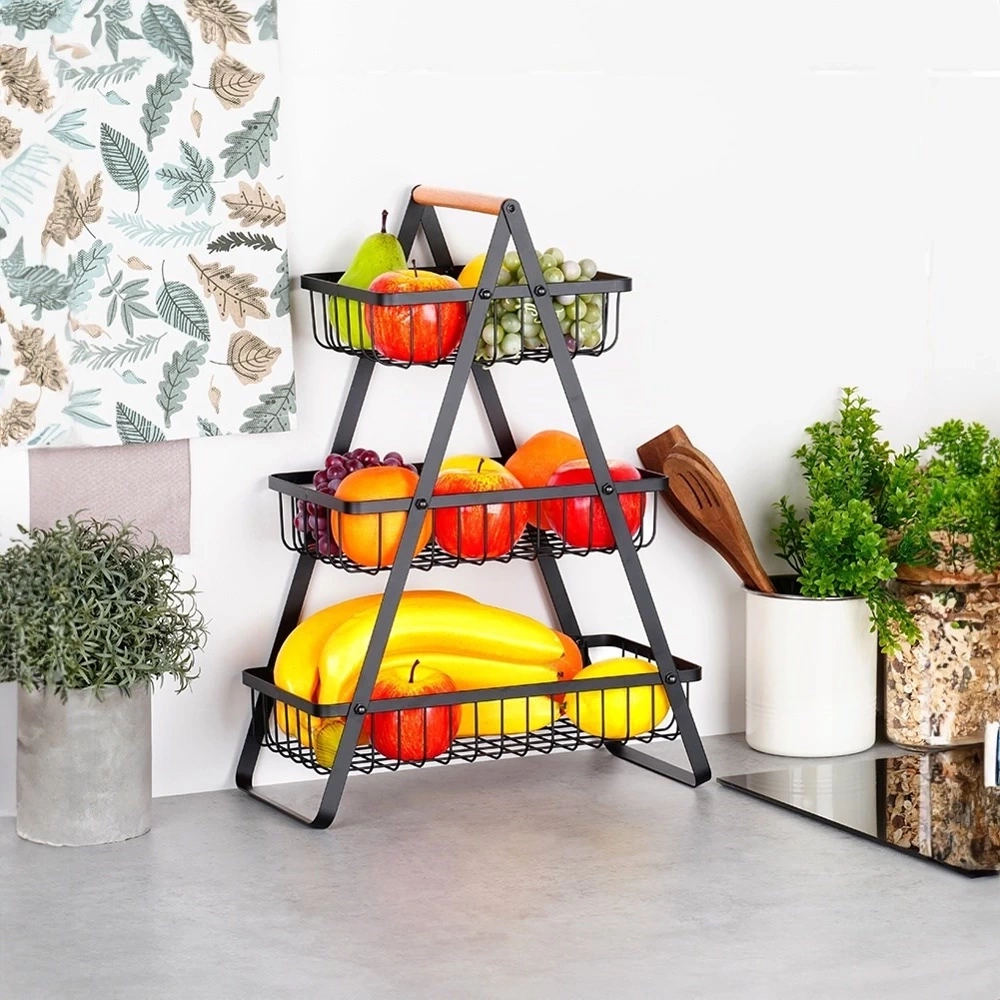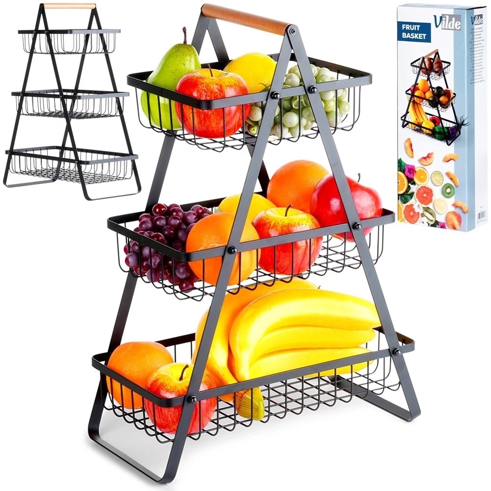 - Trzypoziomowy dla lepszej organizacji - Koszyk posiada trzy poziomy, dzięki czemu ma dużą pojemność. Dodatkowo, posiada otwarte ścianki, które zapewniają odpowiednią cyrkulację powietrza. Dzięki niemu owoce lub warzywa będą pięknie wyeksponowane, a także dłużej zachowają świeżość.