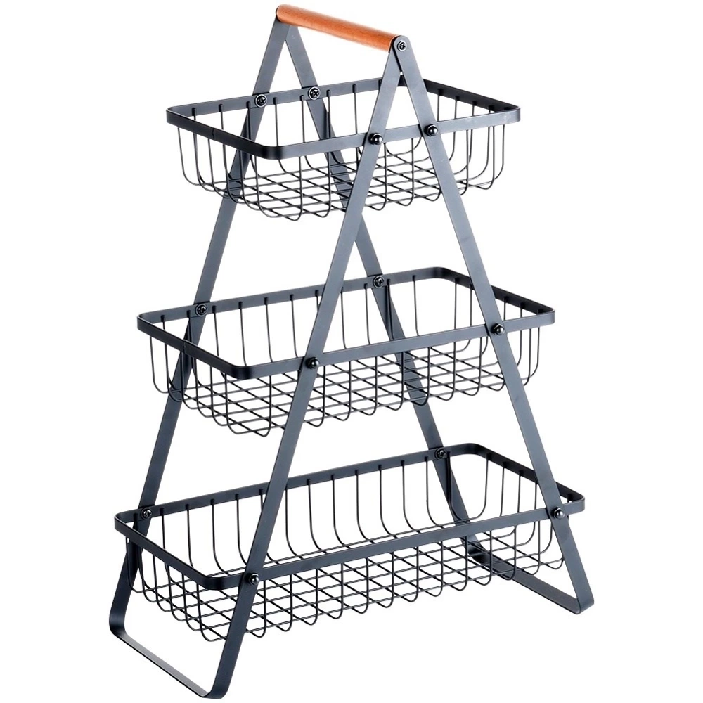 - Trzypoziomowy koszyk na owoce i warzywa w stylu loft. Wykonany z metalu w kolorze czarnym. Znajdzie zastosowanie w każdej kuchni.