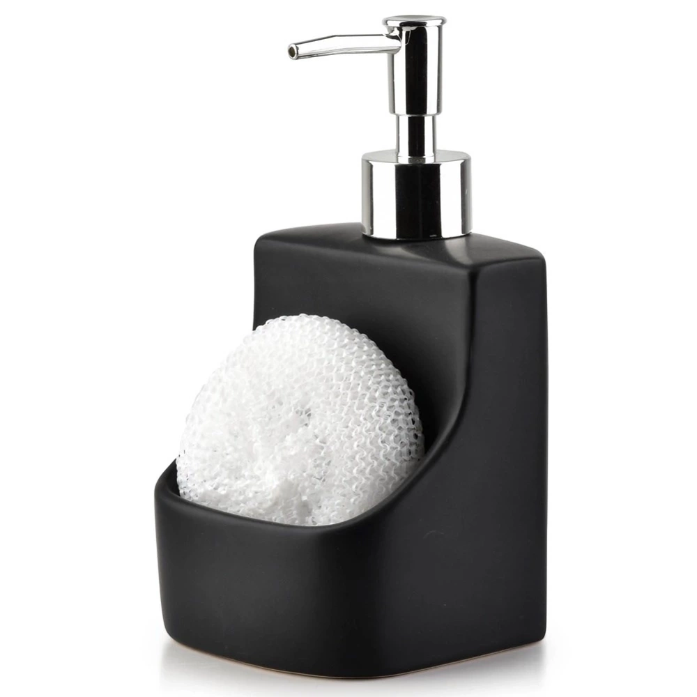 - Dozownik płynu do mycia naczyń o pojemności 400 ml. Posiada dedykowane miejsce na gąbkę, w zestawie z gąbeczką. Niezbędny w każdej kuchni.