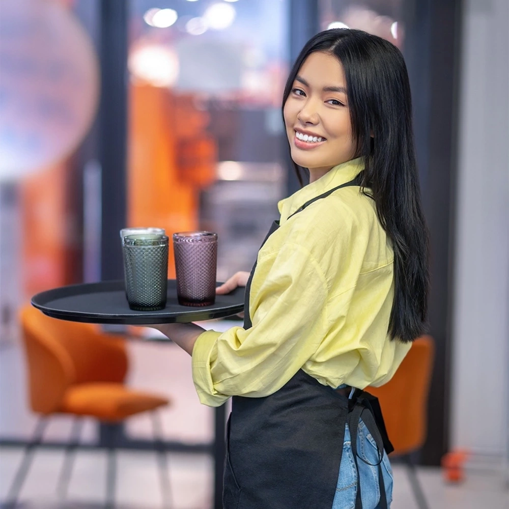 - Przydatna w gastronomii i w domu- Taca kelnerska jest wszechstronna i przydatna do przenoszenia napojów, potraw, sztućców i innych elementów serwisu. Idealna do kawiarni lub restauracji. Sprawdzi się także w użytku domowym, w trakcie przyjęć lub spotkań ze znajomymi.