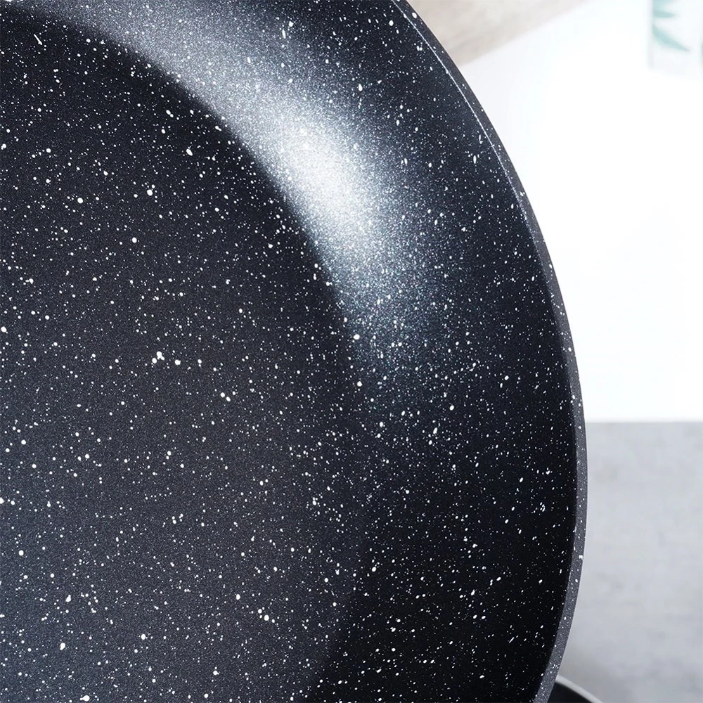 - Nieprzywierająca powłoka granitowa - Patelnia wykonana z aluminium z nieprzywierającą powłoką granitową w czarnym kolorze. Powierzchnia nieprzywierająca umożliwia przygotowywanie zdrowych i smacznych posiłków z minimalną ilością tłuszczu. Wyposażona w uchwyt wykonany z najwyższej jakości, wytrzymałego tworzywa imitującego drewno.