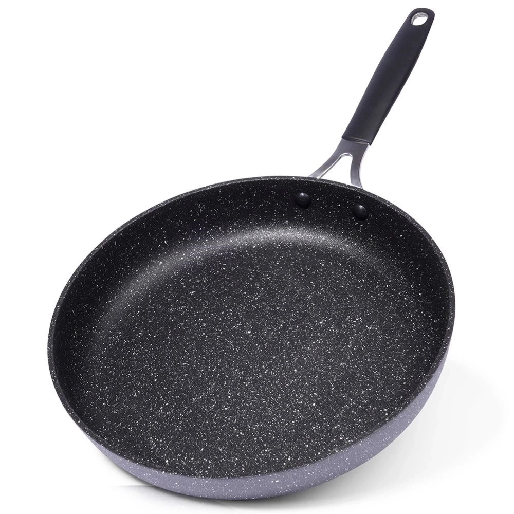 Patelnia granitowa wykonana z najwyższej jakości materiałów, nie zawiera żadnych toksycznych związków - PFOA, PTFE. Można stosować na wszystkich typach kuchenek wraz z indykcją. Patelnia zaskoczy Cię swoimi unikalnymi właściwościami. Jej chropowata powierzchnia jest idealna do steków i wielu innych przysmaków. Dzięki temu olej jest lepiej rozprowadzony pod potrawami, składniki są równomiernie przypieczone, nie palą się. Oryginalny produkt czeskiej marki Orion. Wyprodukowano zgodnie z europejskimi standardami.