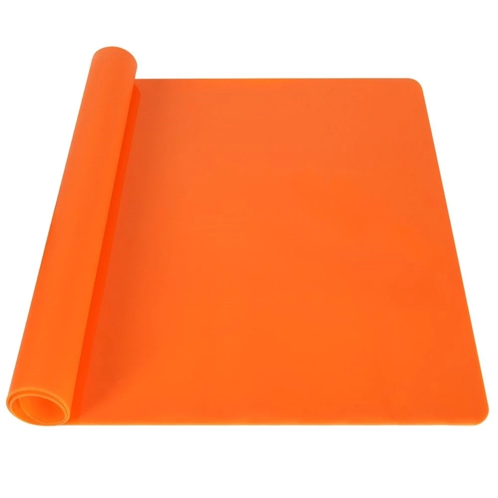 Nowoczesna, pomarańczowa stolnica silikonowa, z jednej strony wyposażona w powłokę zapobiegającą przywieraniu, a z drugiej zapobiegającą przesuwaniu się maty, dzięki czemu świetnie trzyma się blatu. Mata jest idealna do wyrabiania ciast, ciasteczek, pizzy. Całkowicie bezpieczna dla zdrowia i neutralna dla żywności. Do wykrawania nie należy używać ostrych noży, może to uszkodzić stolnice. Oryginalny produkt czeskiej marki Orion. Wyprodukowano zgodnie z europejskimi standardami.