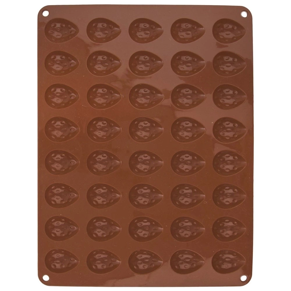 - Brązowa forma silikonowa do przygotowywania pralinek w różnym kształcie. Jest lekka, elastyczna i zajmuje mało miejsca. Materiał odporny na zmiany temperatury.