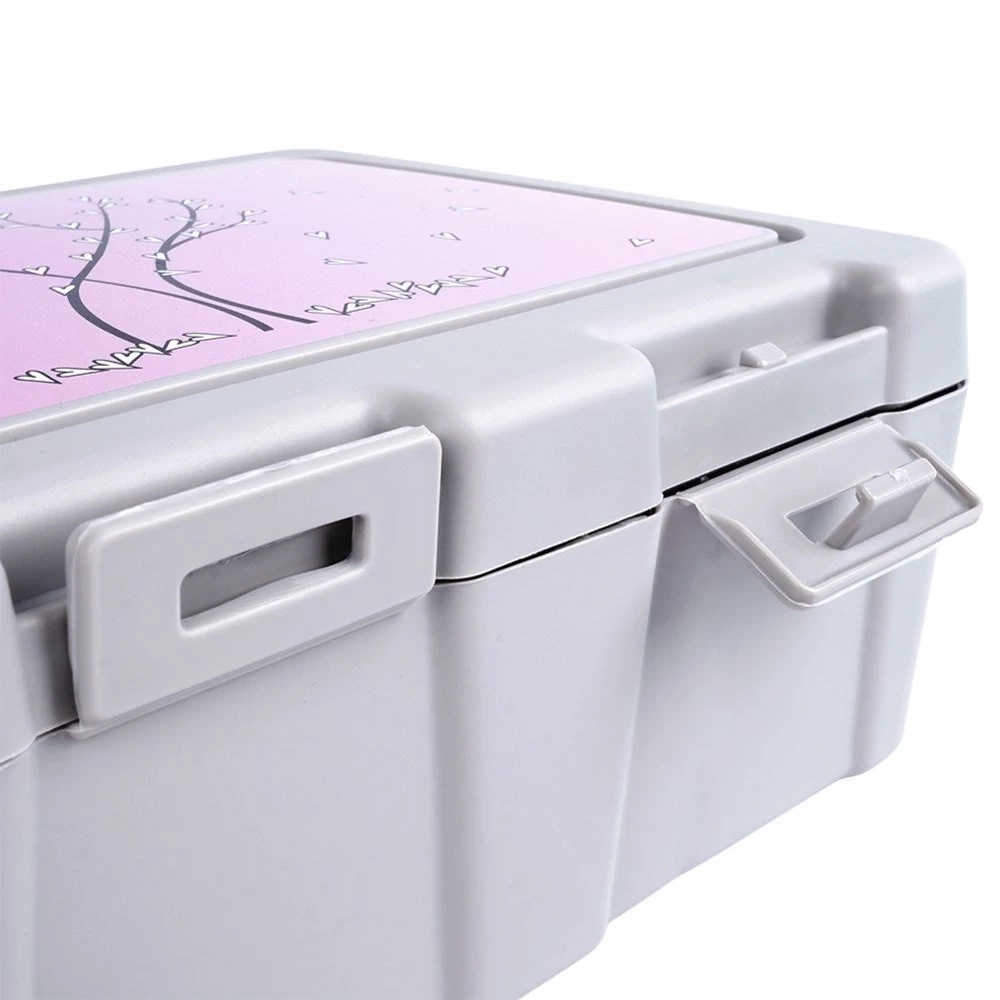 - SOLIDNY - Pojemnik wykonany z wysokiej jakości tworzywa w kolorze szarym. Do dodatkowo posiada nadruk z motywem serduszek na różowym tle.