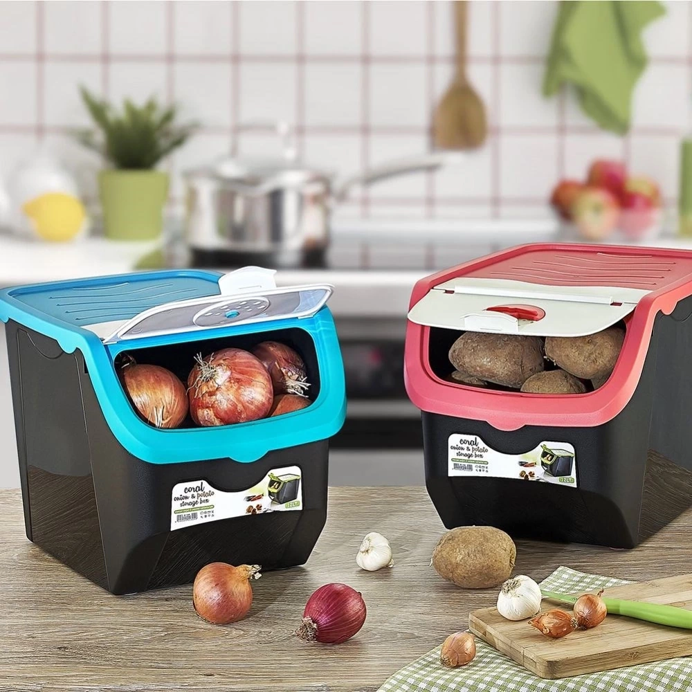 - DO PRZECHOWYWANIA - Praktyczny pojemnik do przechowywaniu cebuli, ziemniaków, czosnku, itp. Pojemnik ma wymiary 30 x 23,5 x 23,5 cm i pojemność 12 litrów.