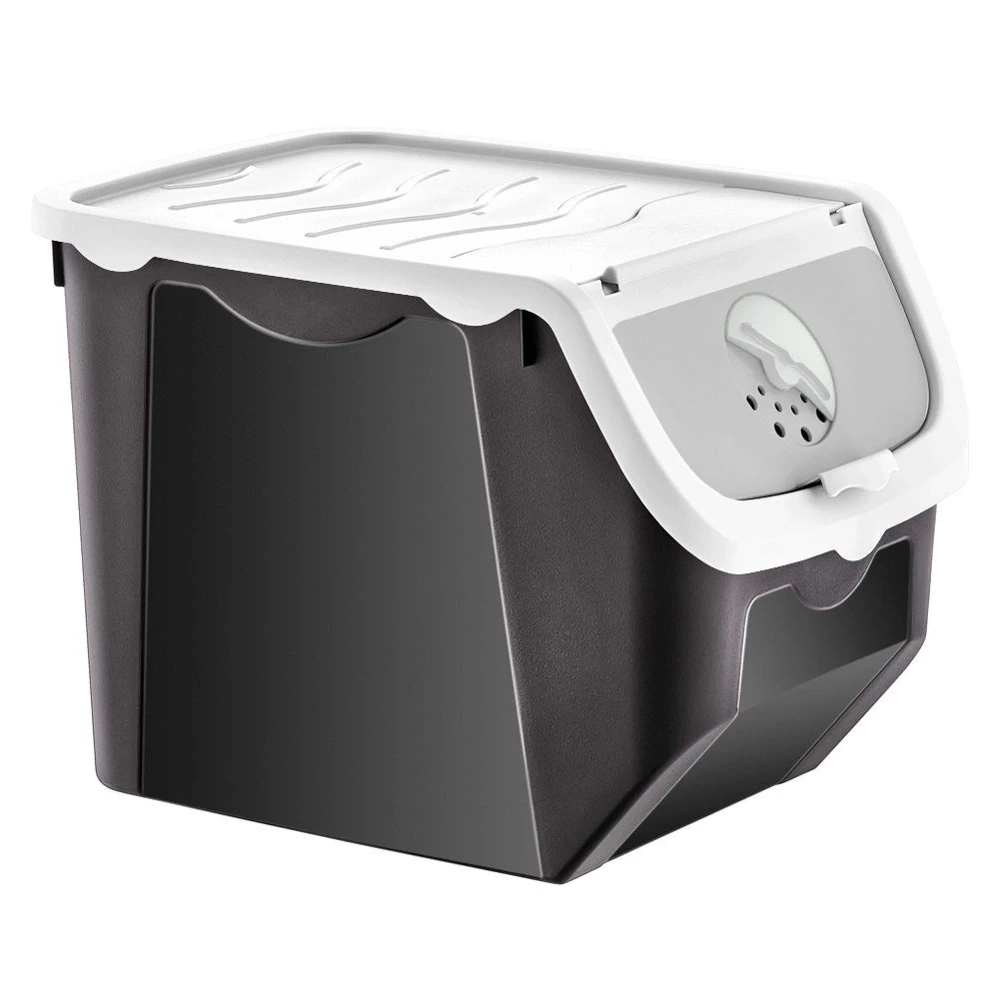 Pojemnik na owoce i warzywa o wymiarach 30 x 23,5 x 23,5 cm i pojemności 12 litrów. Pojemnik wykonany z wysokiej jakości tworzywa w kolorze czarnym a pokrywka w kolorze białym. Posiada regulowaną wentylację, dzięki czemu owoce i warzywa zachowają dłużej swoją świeżość. Wygodny w użytkowaniu dzięki otwieranej pokrywie na klips. Można z łatwością zarówno wyciągnąć jak i włożyć odpowiednie warzywa. Pojemnik możemy przechowywać w zamrażarce. W łatwy sposób go wyczyścimy, gdyż nadaje się do mycia w zmywarce do naczyń. Oryginalny produkt czeskiej marki Orion. Wyprodukowano zgodnie z europejskimi standardami.